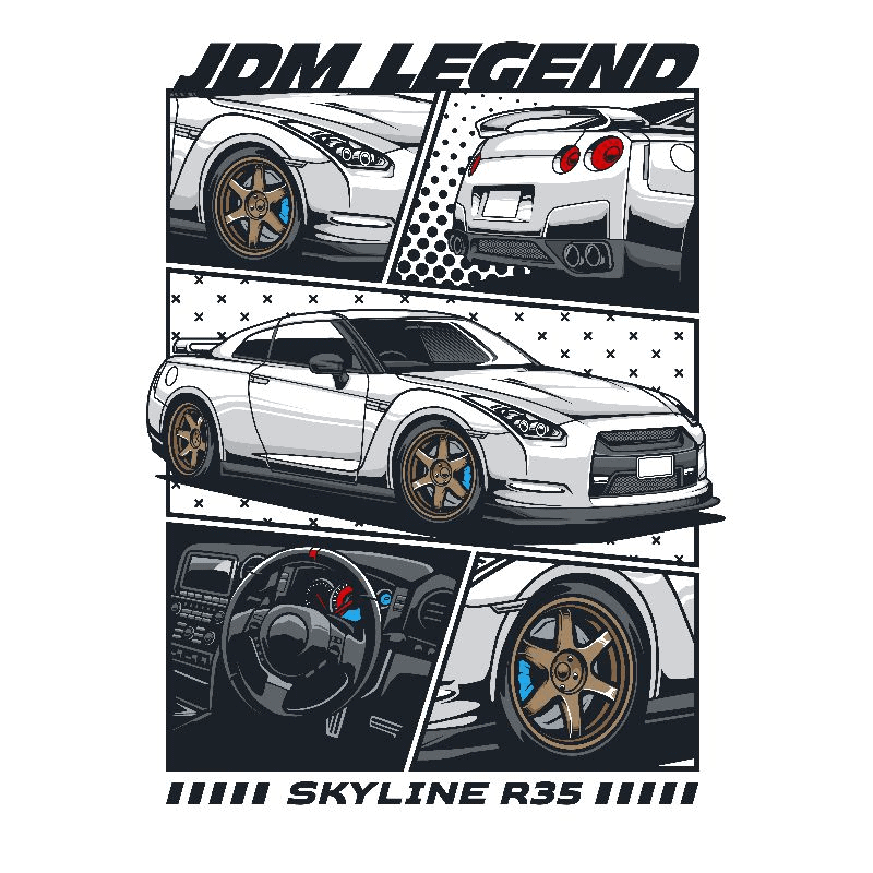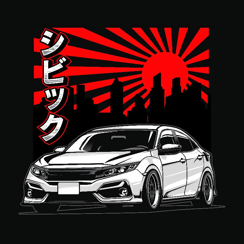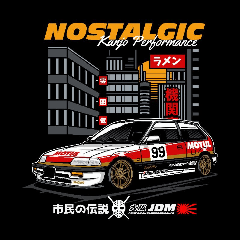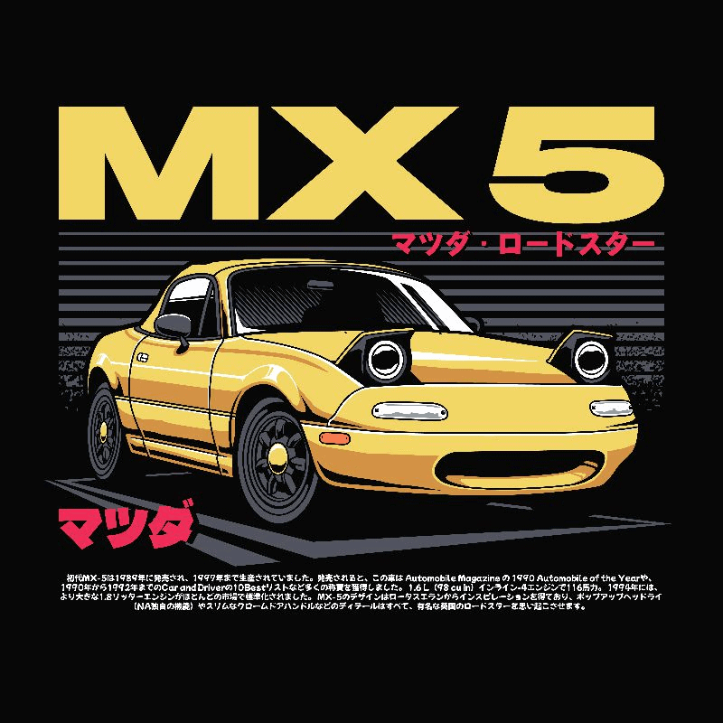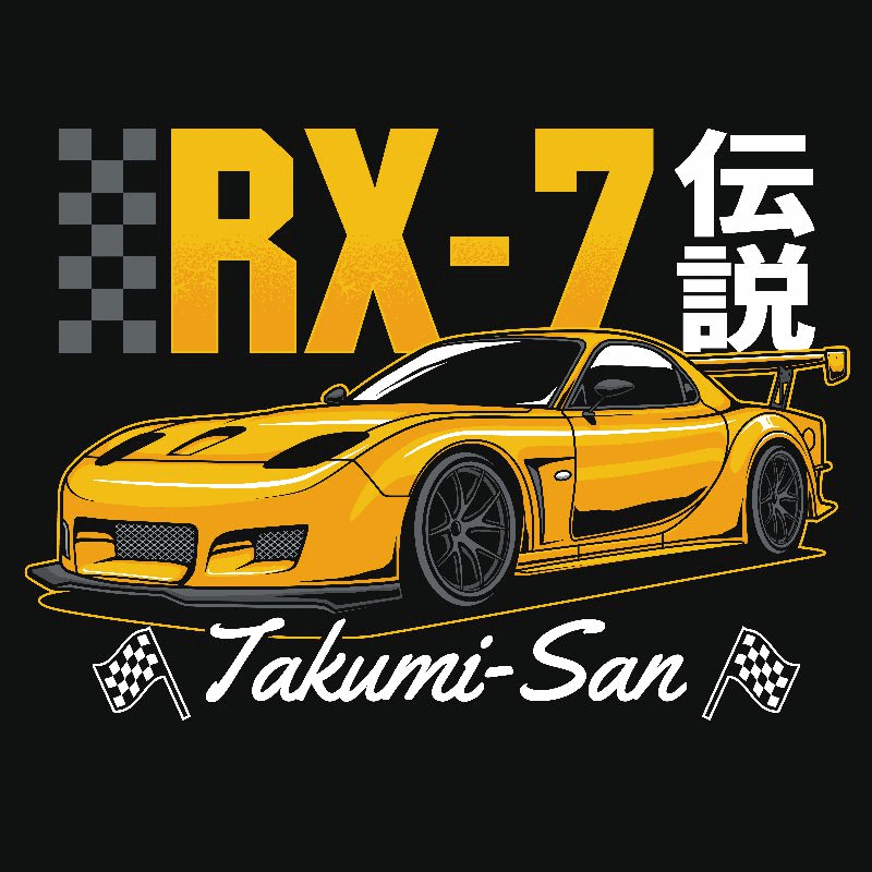 A pack of neat car t-shirt designs with sports cars and racing themes, featuring fully editable vector sources as well as print-ready illustrations in high resolution, with slogans, vehicle make/models, japanese lettering, manga style illustration panels and more.