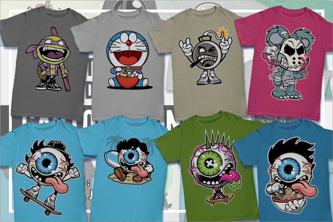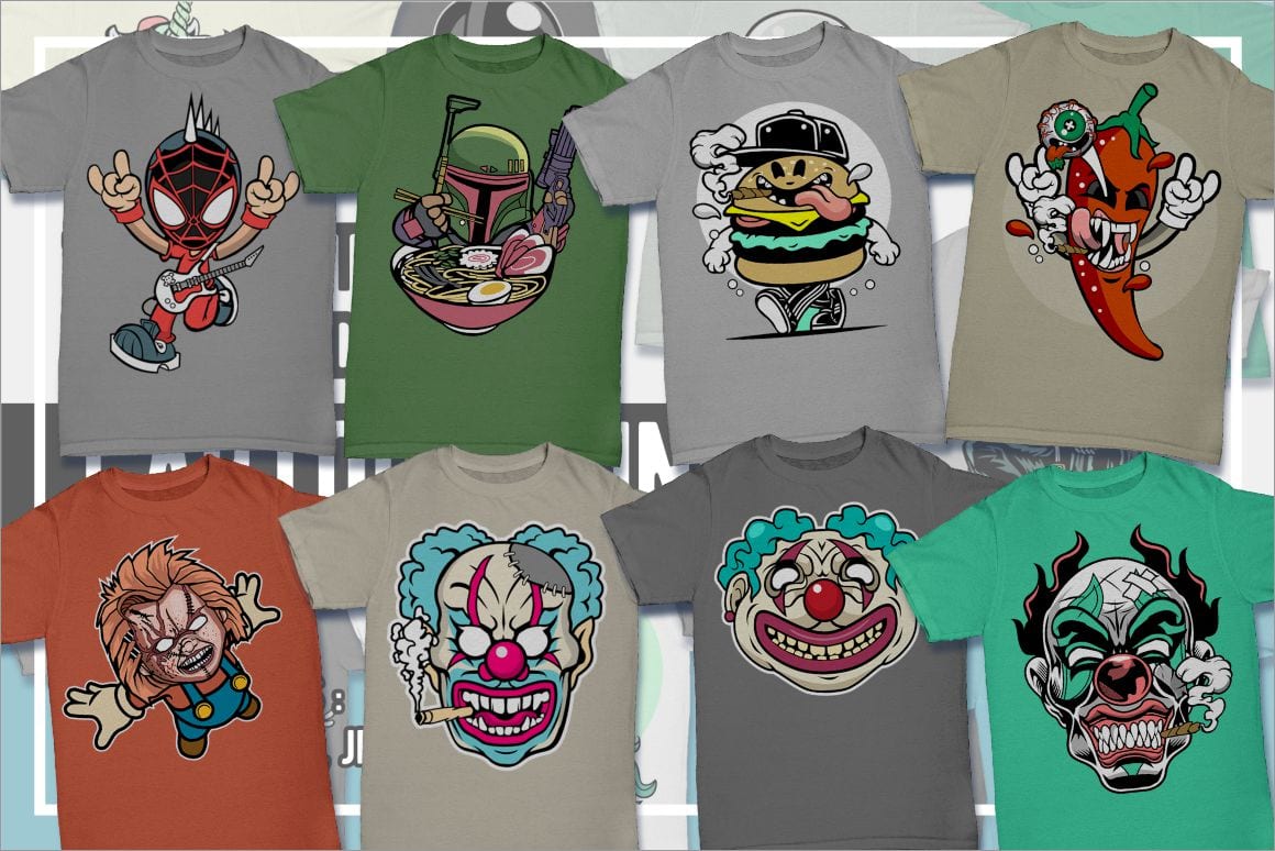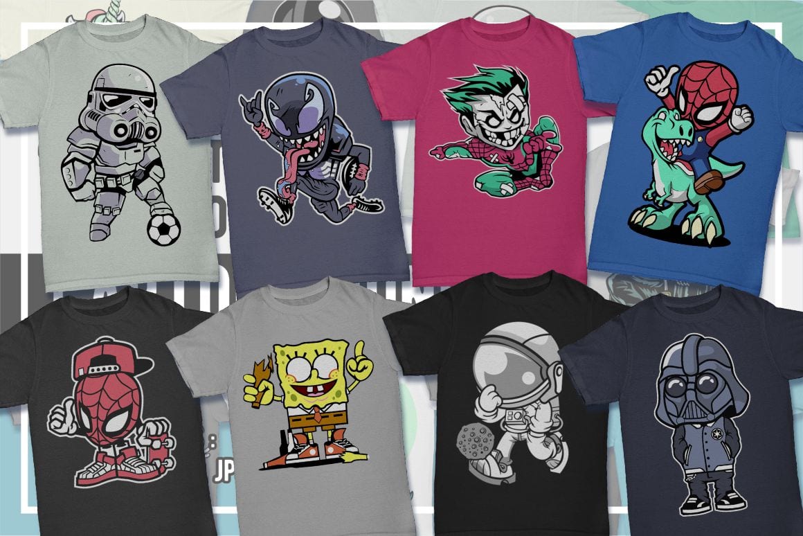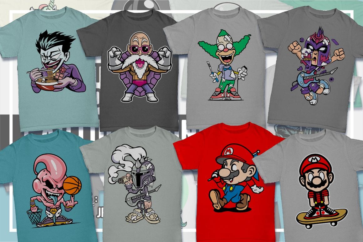 Cartoon T-Shirt Design Pack – 100 Cartoon Illustrations from Movies & Games