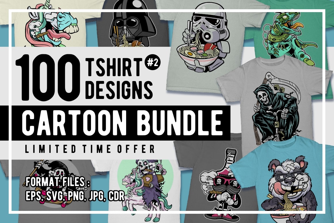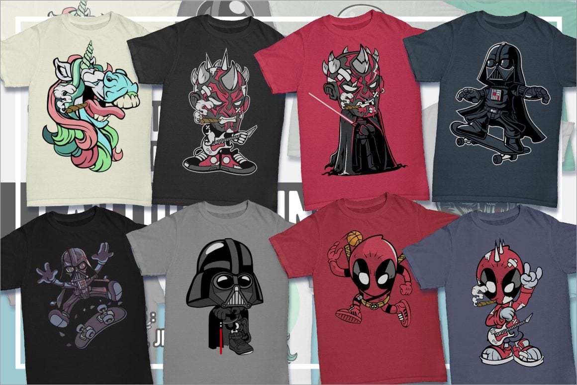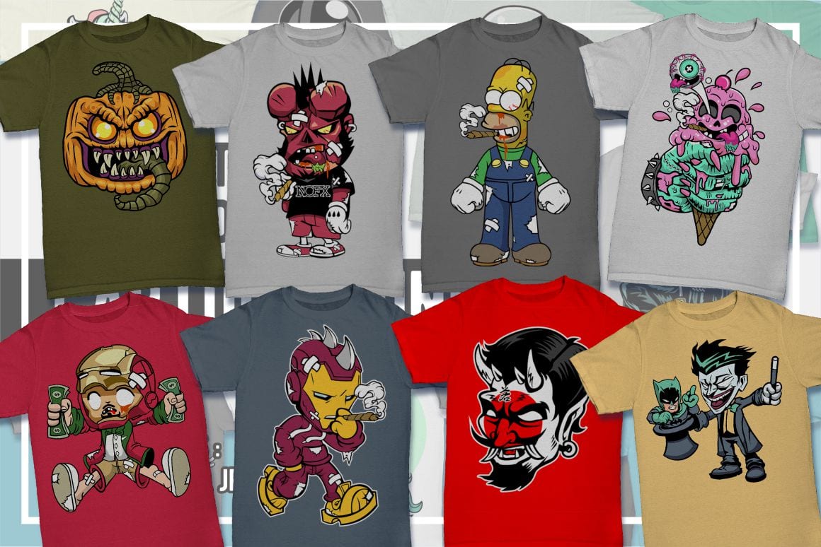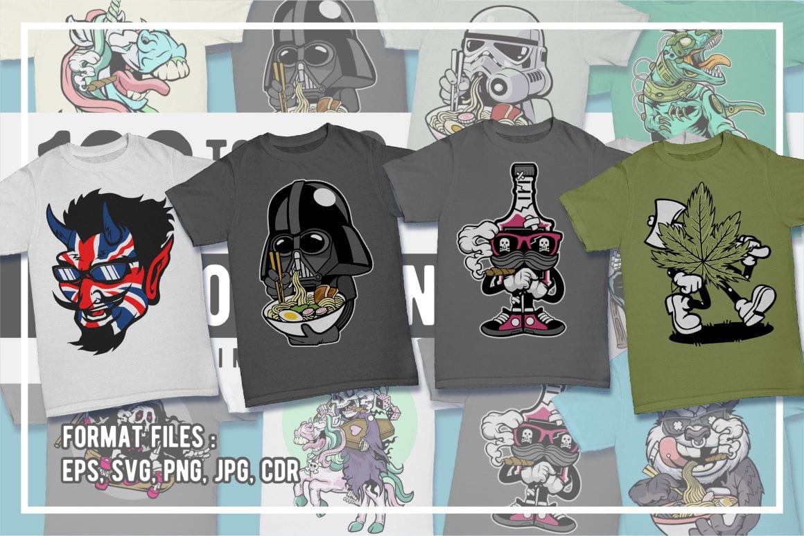Cartoon T-Shirt Design Pack – 100 Cartoon Illustrations from Movies & Games
