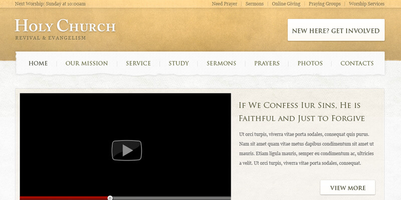 ​The Church website PSD template features clean and clear look. It has a call to action button in the header, slider carousel with videos, gallery section, locations, socials and many more, all within a free PSD template. You can even use any of these elements in case you are not going to create a church website.