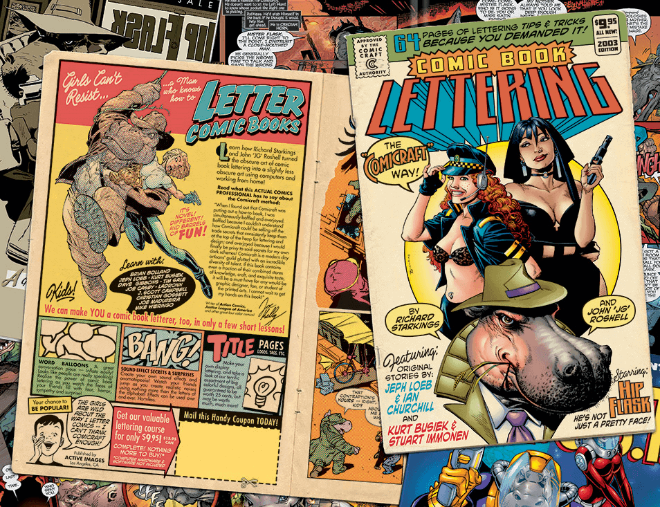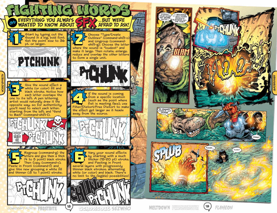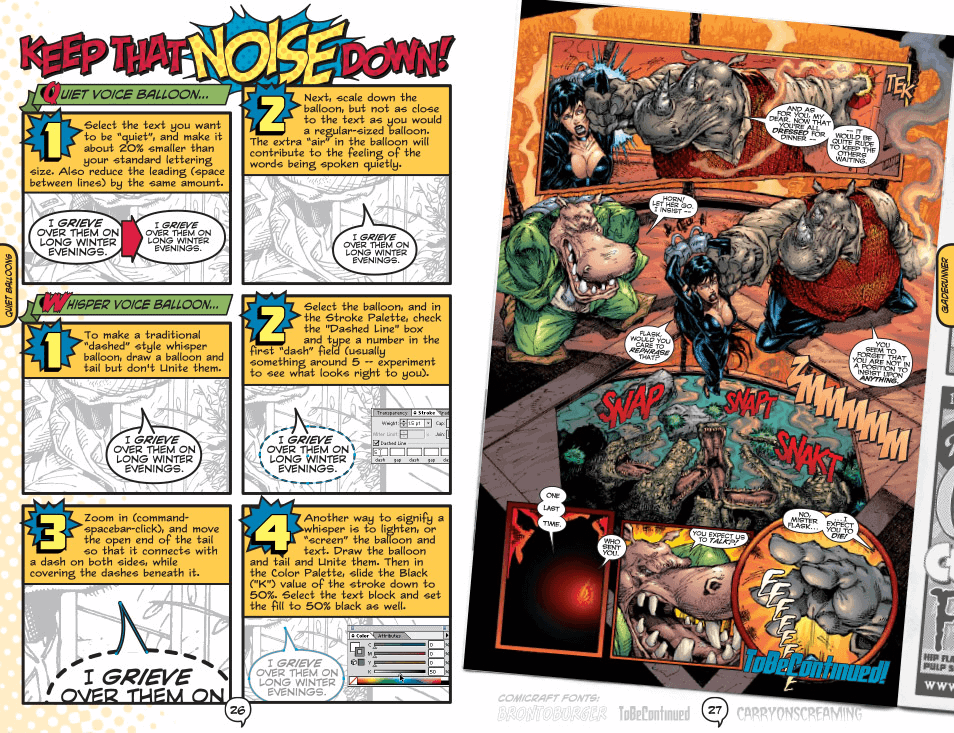 The Comicraft Way book guides readers through the process of lettering a comic strip digitally, from font design to balloon placement, sound effects, signage, title page and publication design, it covers every conceivable aspect of comic book lettering.