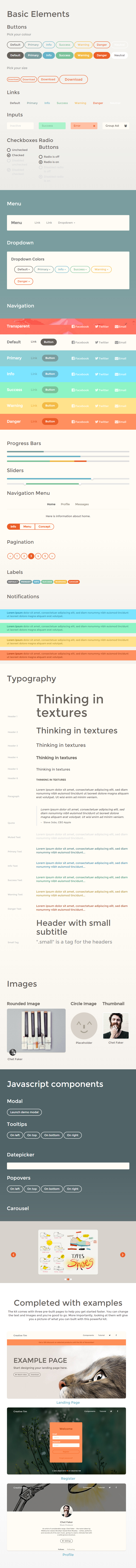 Paper Kit is a UI kit for Bootstrap that features nice and smooth pastel colors, being completely different from the common flat, iOS or material styles.