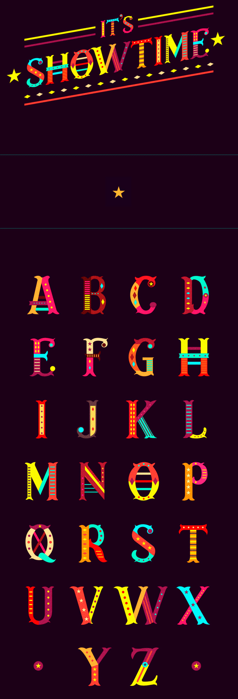 A beautiful colorful font that resembles the ones used in actual circuses. It has different shapes and colors, making it a playful font that you can use in posters, clothing and even on websites. Available in Mac format.