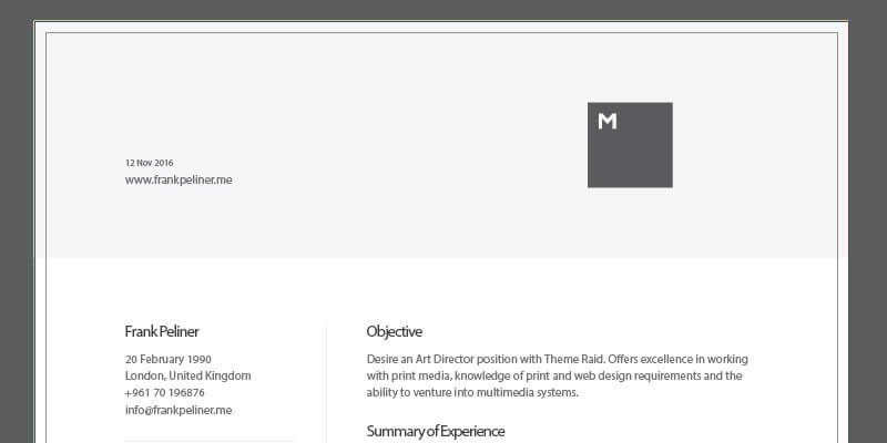 A complete template for a CV, made in Adobe Illustrator and available for personal and commercial purposes. The template is clear, has supporting graphics and has several areas so you don’t miss any information about yourself.