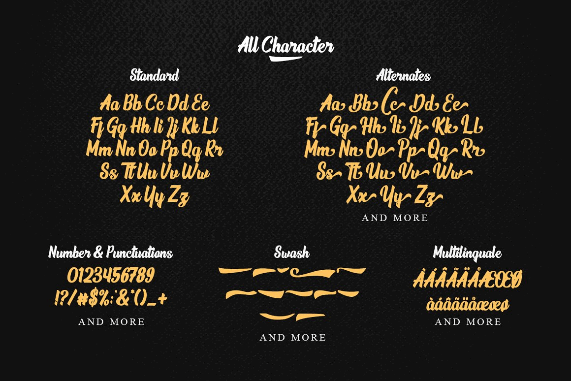 The package delivers 110+ fonts from 15 distinct font families, with files in OTF and TTF formats, featuring multilanguage support, alternative uppercase and lowercase versions, stylistic alternates, multiple versions and weights on each family, ligatures, international glyphs as well as special characters, and unique designs that will be perfect for t-shirt designs, posters, business cards & other print templates as well as digital designs and editorial designs