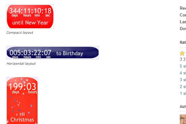 Display an animated countdown clock for an event of your choice. Select from a choice of countdown designs, colors and sizes.