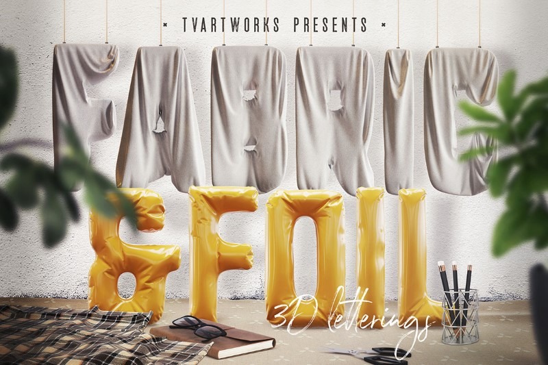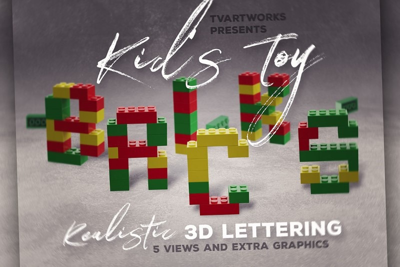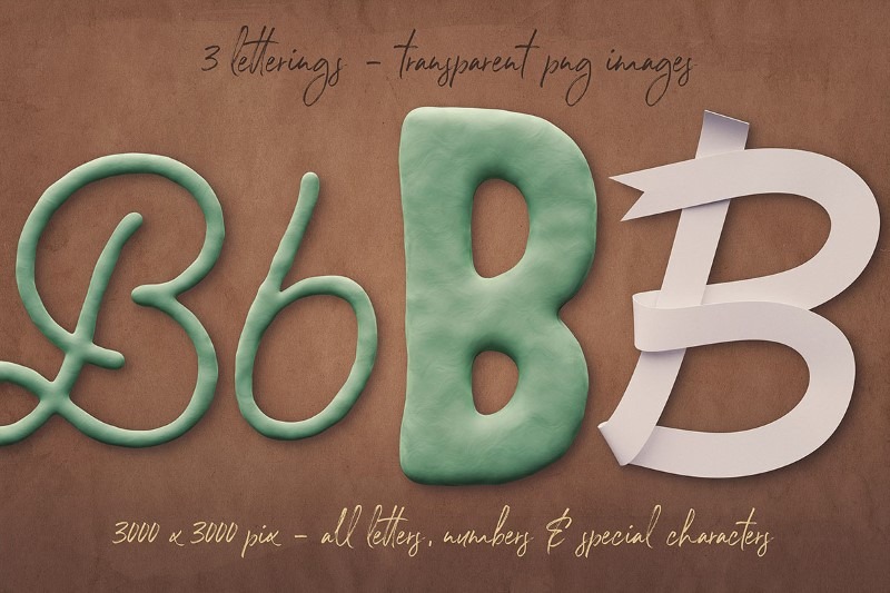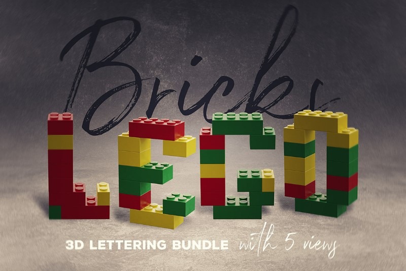 Creative 3D Lettering Pack: Lego, Marquee Light Bulbs, Fabric, Foil & More – PNG & OTF Files