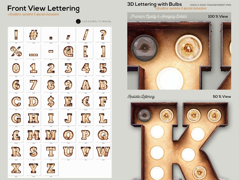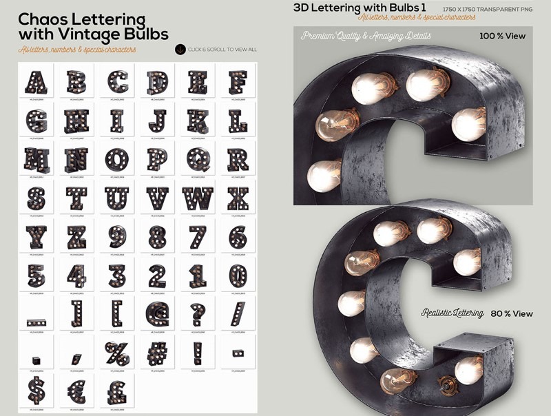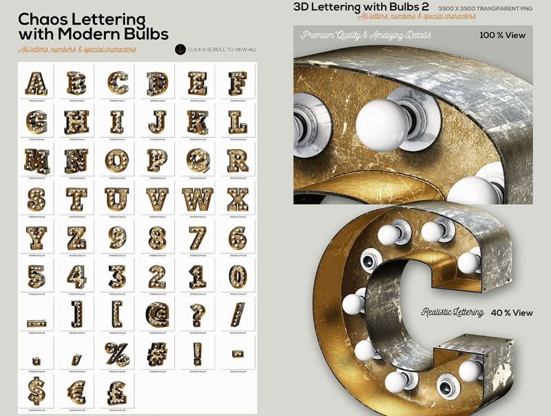 Today’s bundle features a collection of 3D lettering designs & fonts with a variety of styles, ranging from Art Deco to Fabrics & Foils, Marquee Light Bulbs and many more