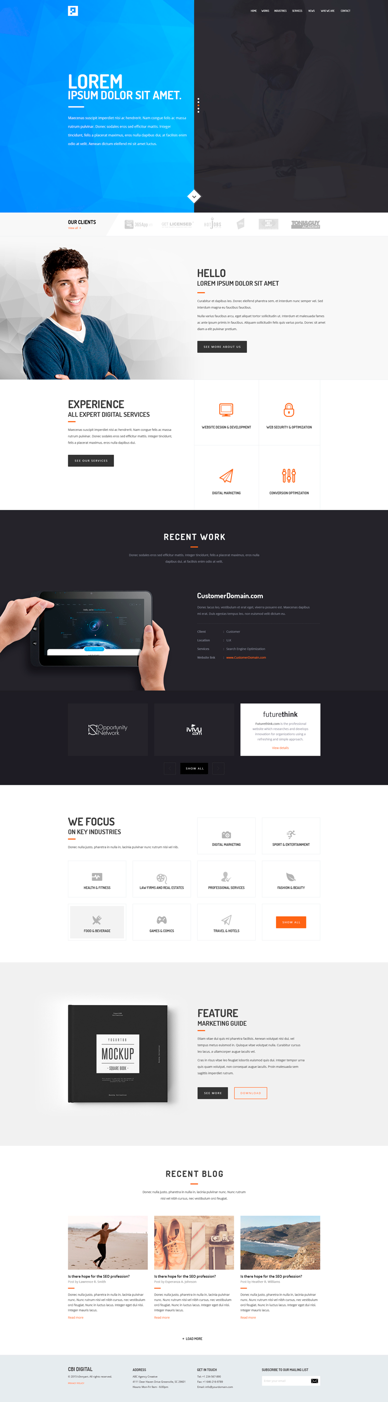 A cool single page template made in PSD format that includes a homepage design. Among the elements, you can find a slider, clients area, features, recent work, blog area and many more, all in a minimal and clean style. This template can be downloaded for free, it weighs 42MB and it was created by k3nnyart.