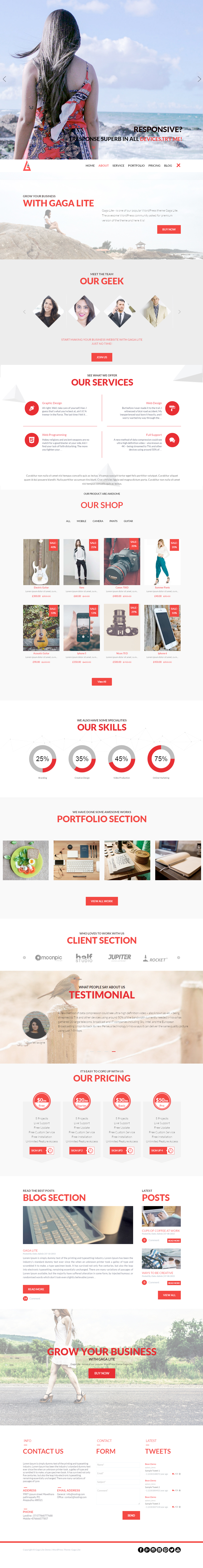 Gaga Lite is a beautifully crafted theme for creative agencies that features parallax effects for its single page full-width and responsive layout, all elements slide with ease transitions.
