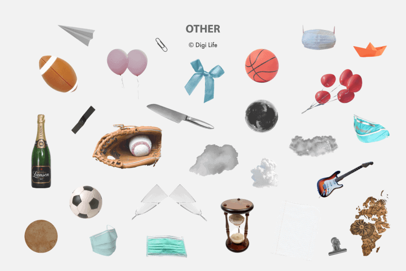 Every object included in this package comes fully isolated on a transparent background, so you can simply drag & drop the objects you want to use and compose unique scenes easily. Elements are all delivered in separate PNG files, and the pack also includes textures for backgrounds in JPG & PNG formats.