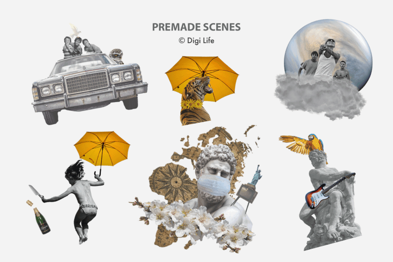 Today’s pack delivers a collection of creative collage design elements featuring a variety of cutout vintage objects and photos, sculptures, animals, botanical elements, vehicles and many more themes that you can use to create stunning collages in minutes