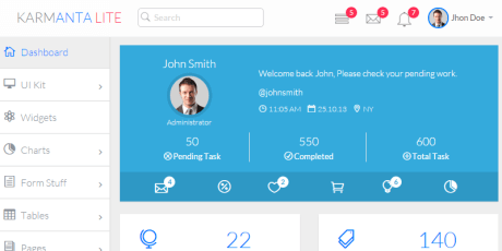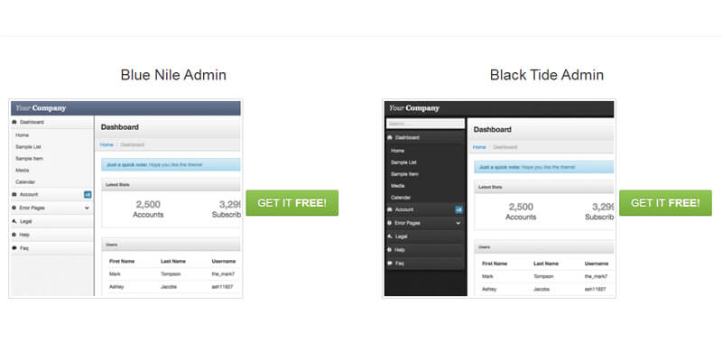 Collection of CSS Admin Templates in several styles, dark, light and colorful.