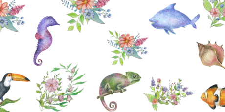 There’s 10 different animal characters, including an Alligator, Bear, Bird, butterfly, Camel, Cat, Chicken, Cow, Deer and a Dog, each one with 5 different use-ready poses in high resolution PNG format with transparent backgrounds so you can drag & drop them into your projects, perfect for online platforms like Canva or Artify