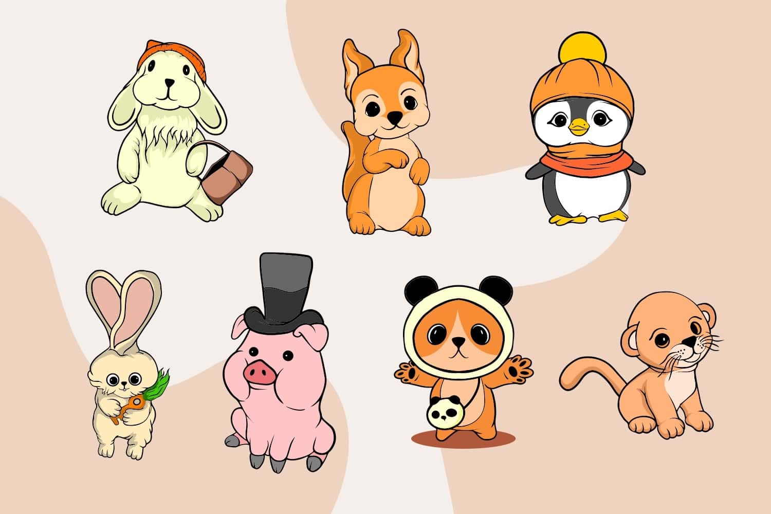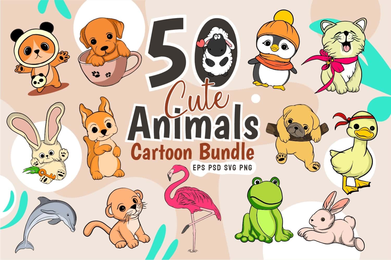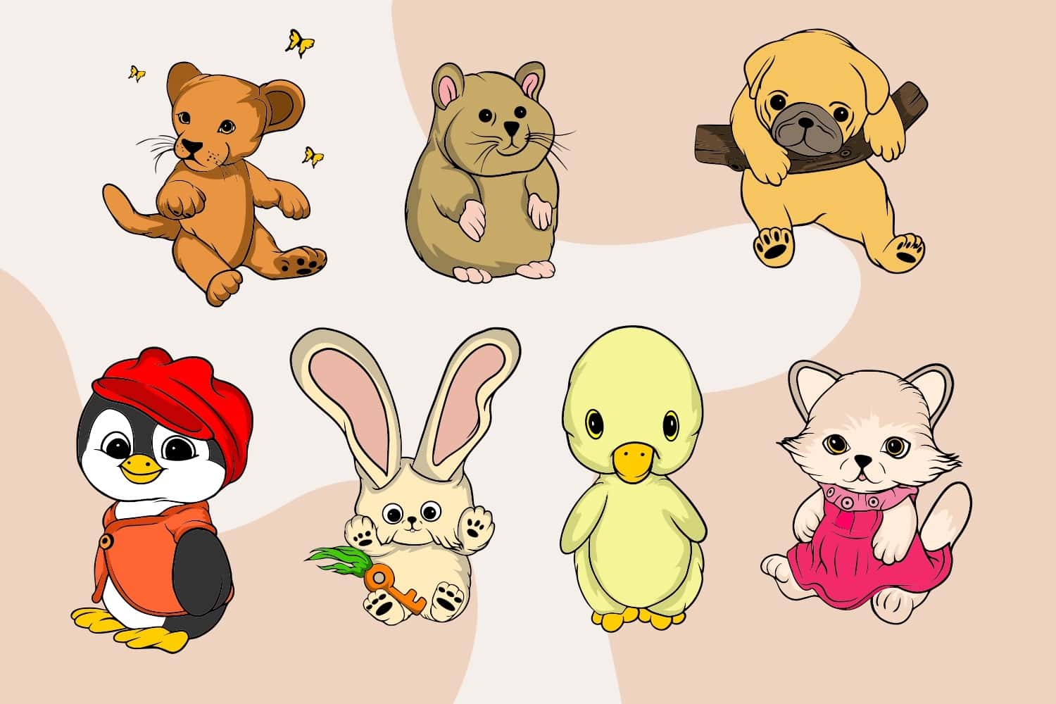 Cute Animal Illustrations Pack, 350+ T-Shirt Designs in Cartoon Style