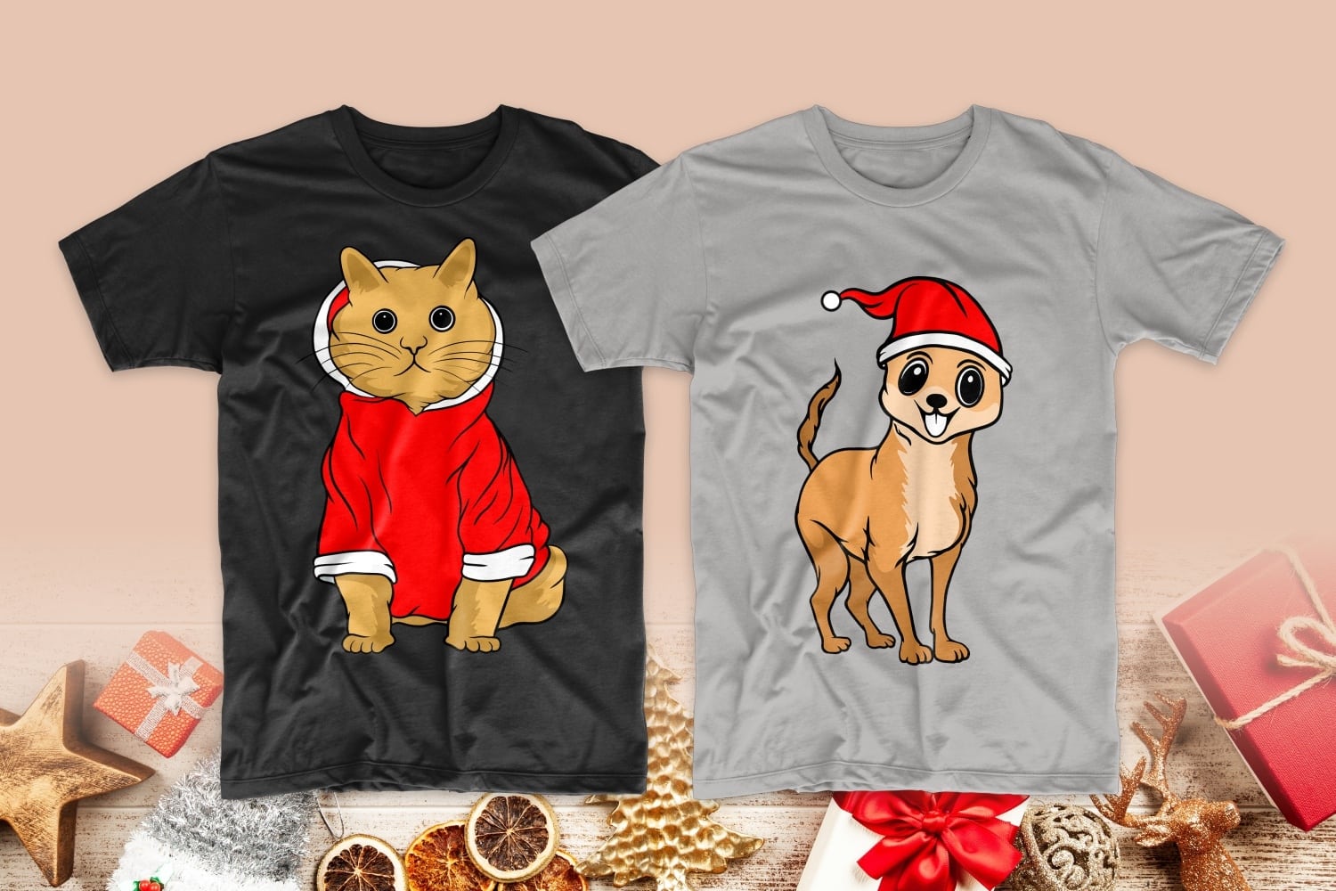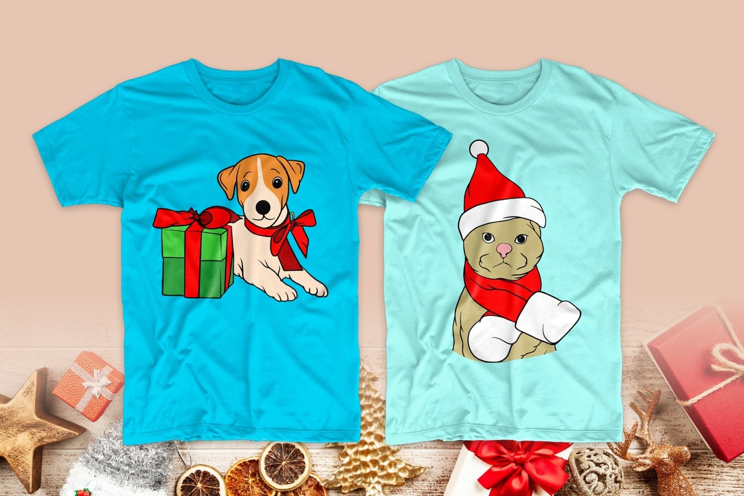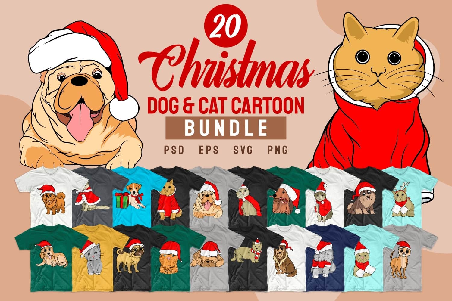 This package contains a massive collection of cute animal illustrations featuring 16 different themes with a cute cartoon design style, ranging from astronaut dogs, cats & mice to funny cats, house pets wearing christmas costumes, dogs playing guitar & many more