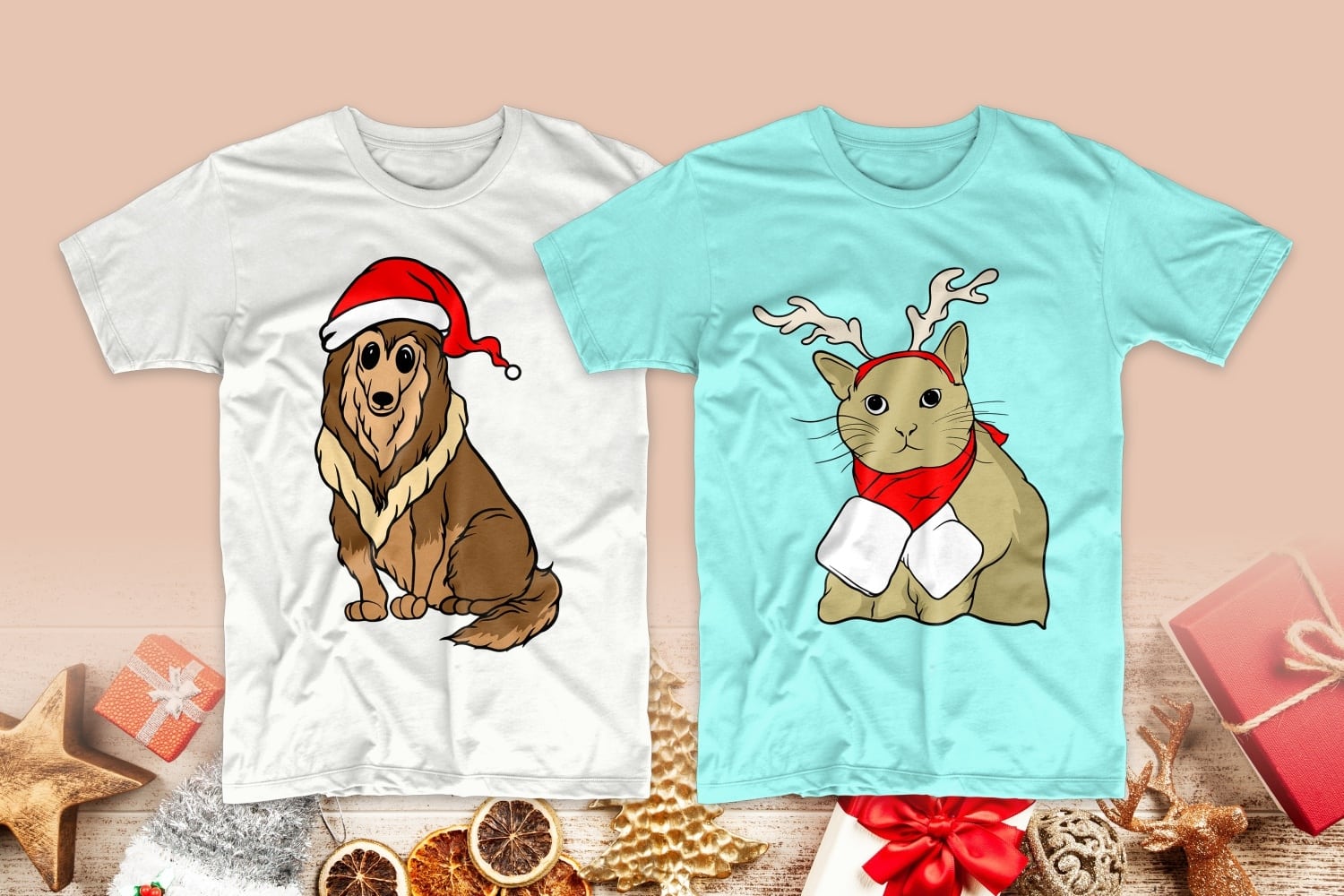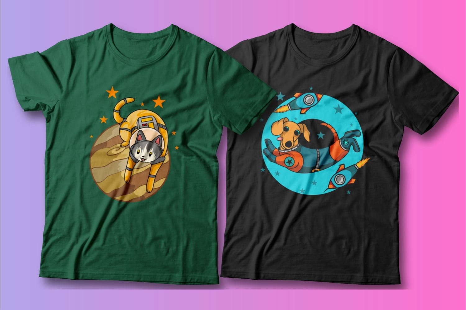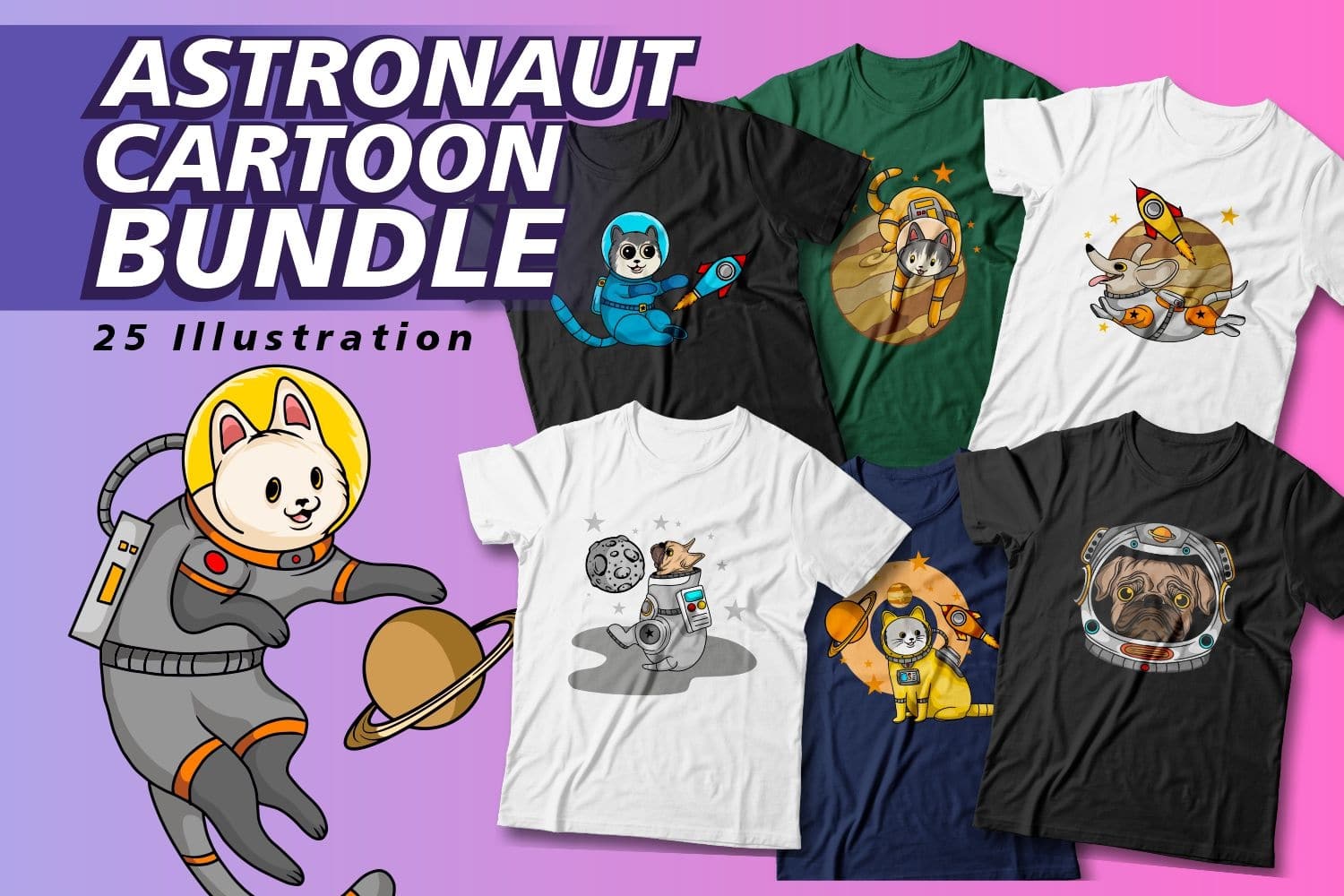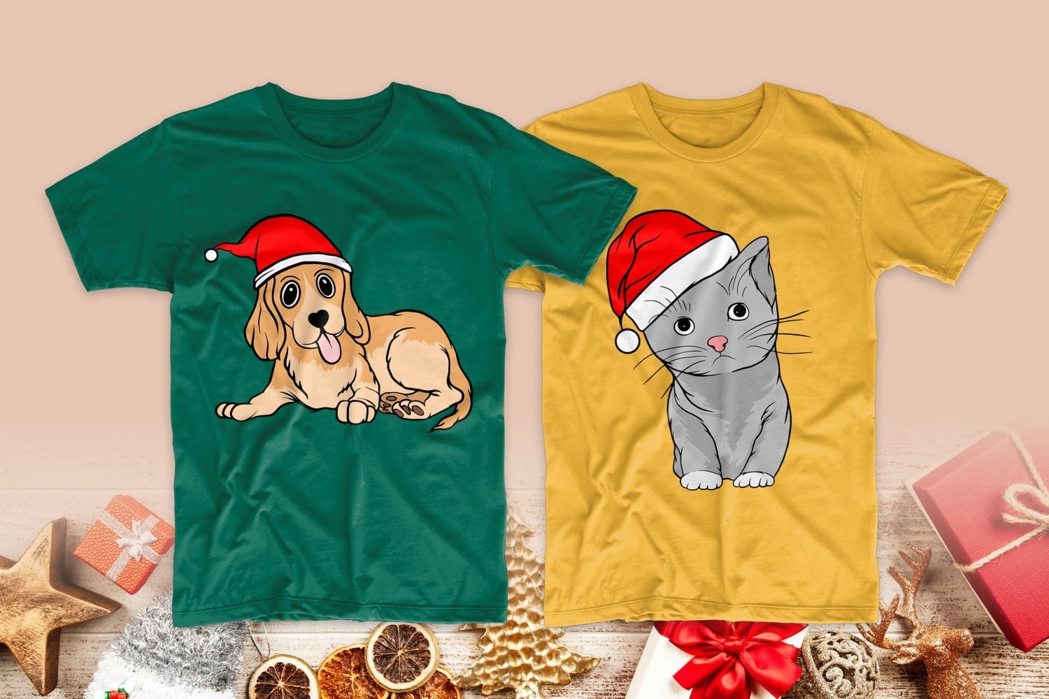 This package contains a massive collection of cute animal illustrations featuring 16 different themes with a cute cartoon design style, ranging from astronaut dogs, cats & mice to funny cats, house pets wearing christmas costumes, dogs playing guitar & many more