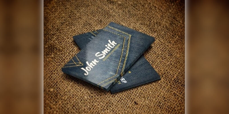 A business card template in PSD format that features a denim texture style and comes in 2 fully layered and editable files being the front and back of the card, as well as font information.