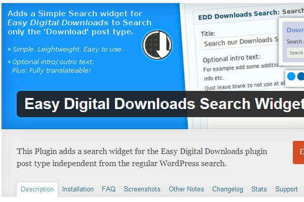 This Plugin adds a search widget for the Easy Digital Downloads plugin post type independent from the regular WordPress search.