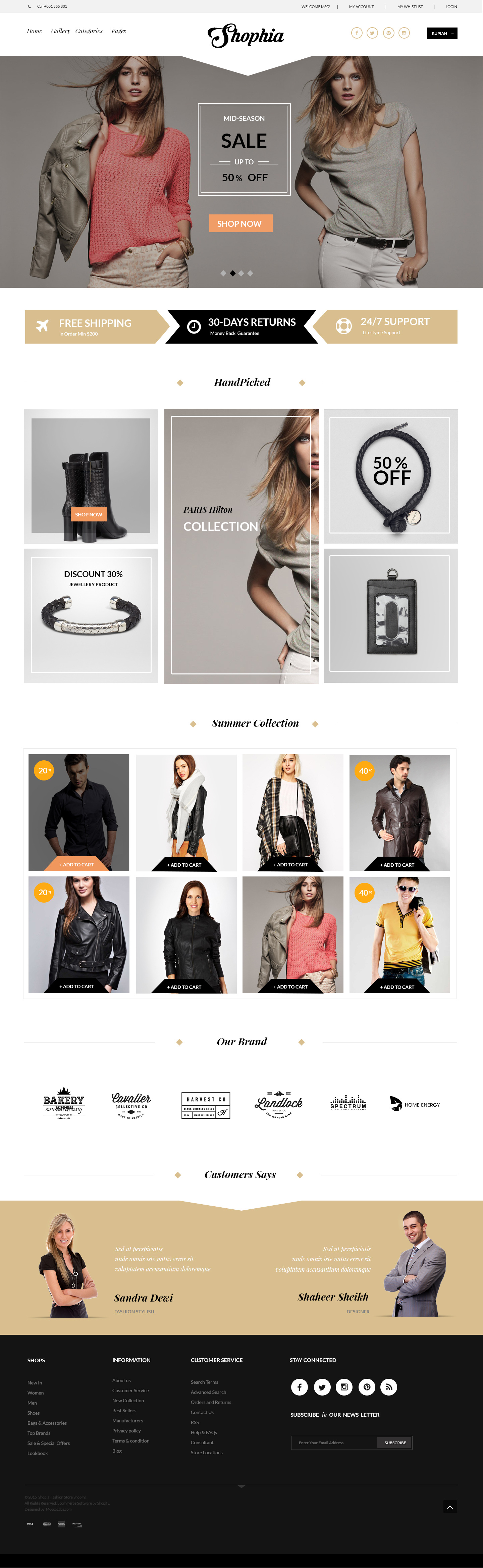 A modern one-page eCommerce template created in Photoshop by Robi Wahyudi that features four sections in which you’ll find a stylish full-width header, photo grids, label-like buttons team info and contact info.