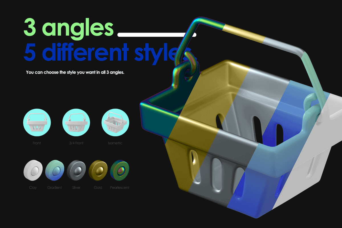 80+ 3D Icons Pack – 5 Palette Styles & 3 Camera Angles