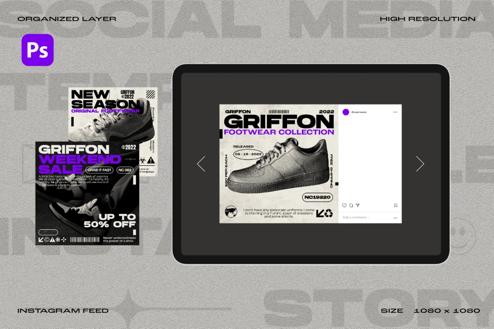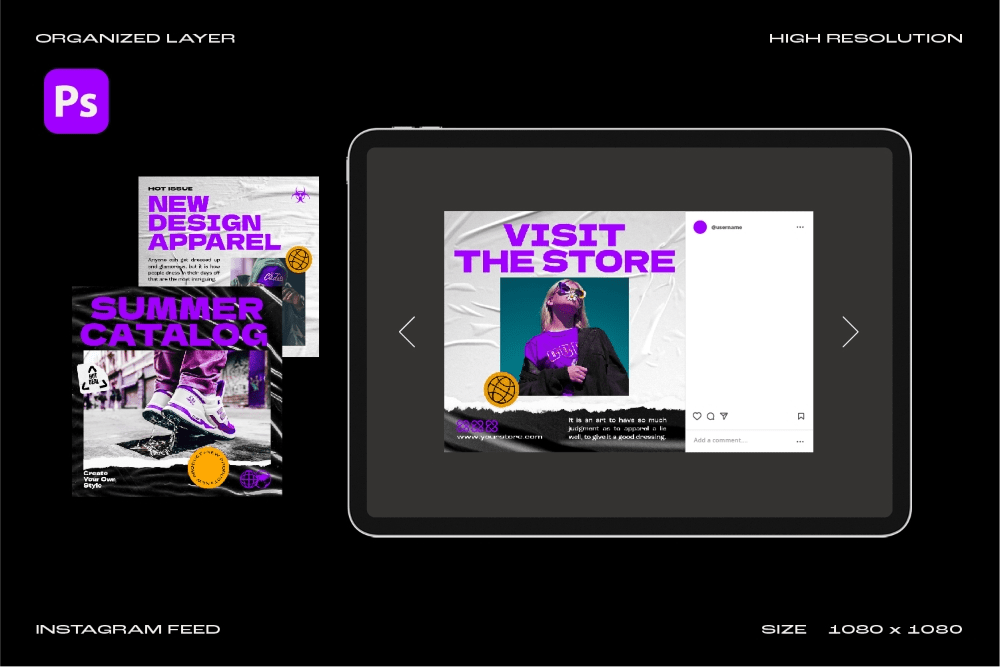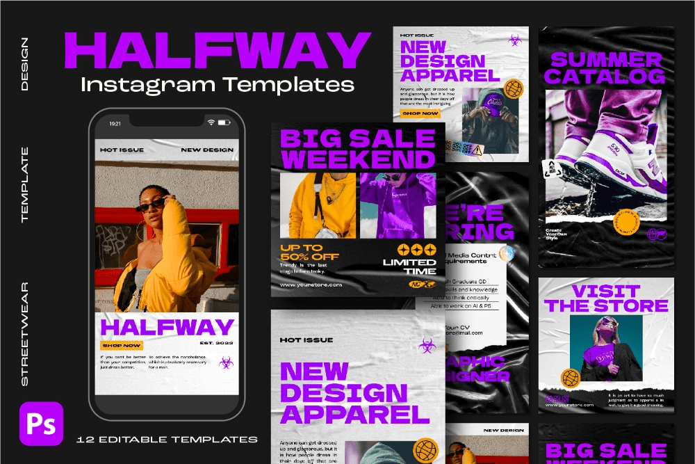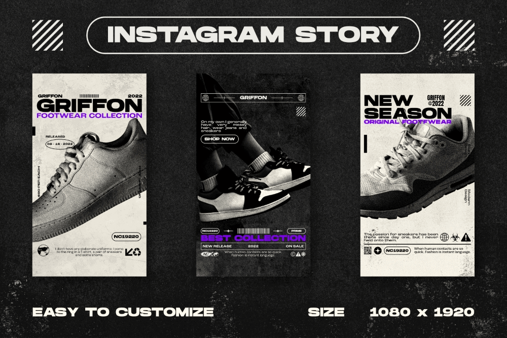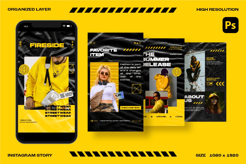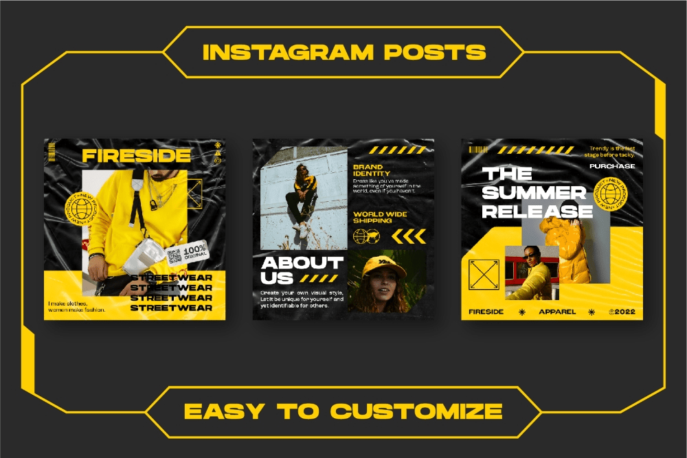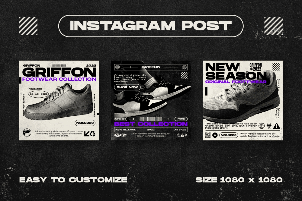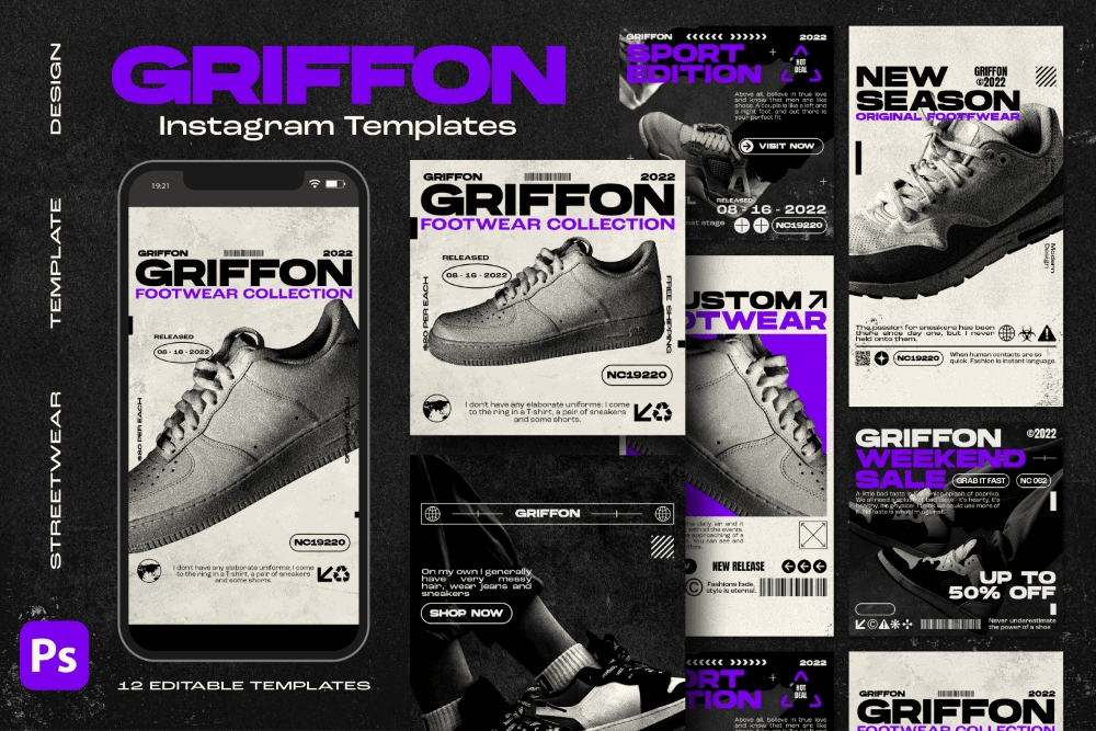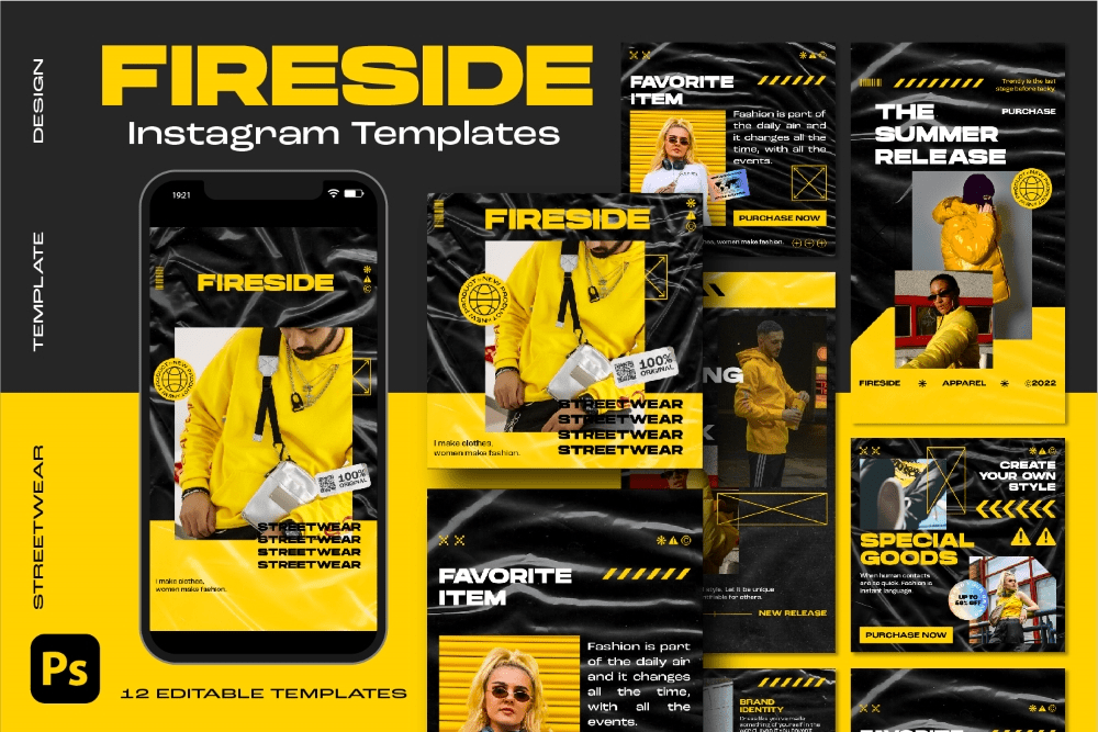 Every template is fully editable in Adobe Photoshop, with proper default sizes for Posts (1080x1080px), and Stories (1080x1920px). These templates are all delivered in PSD format with organized layers, vector shapes and placeholders for images so you can simply drag & drop to populate them with your own content