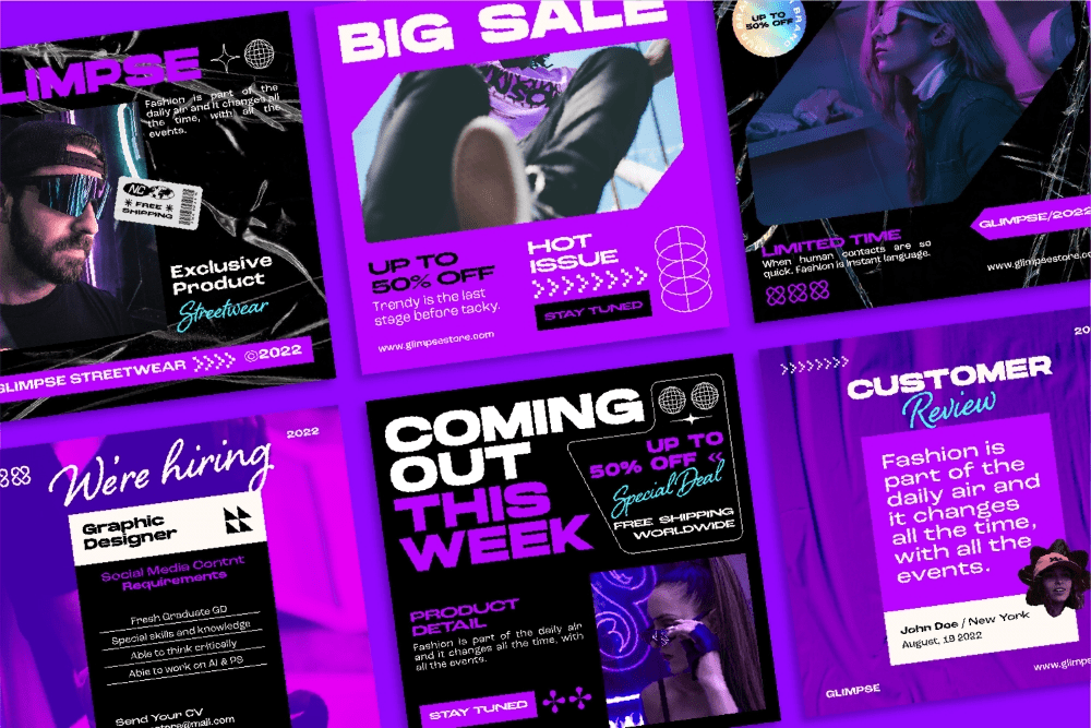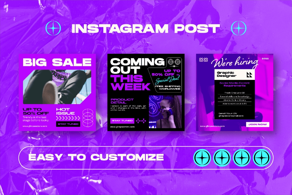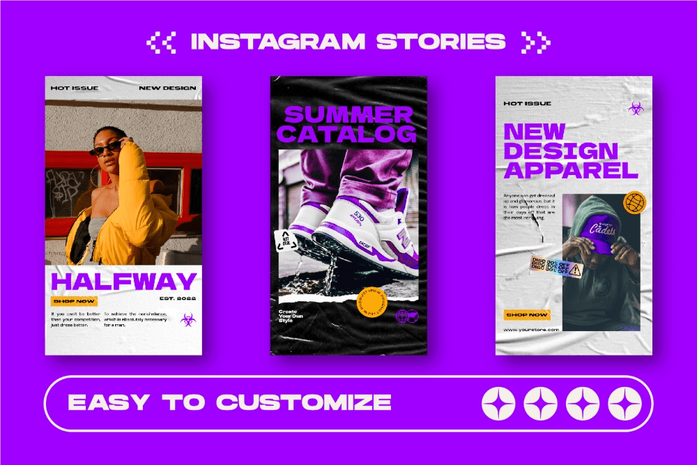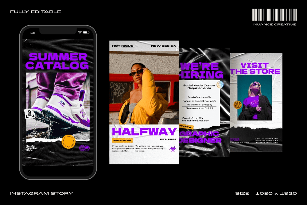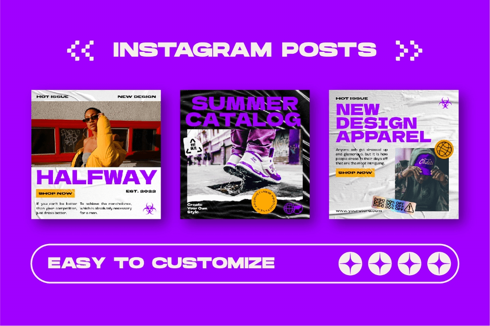 A big collection of branding templates for your Instagram content featuring 400+ editable Instagram templates with creative layouts and eye-catching color palettes that will instantly make your profile, posts and stories much more interesting for your audience