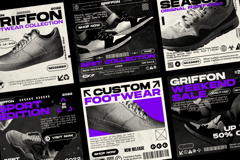 The collection contains 28 different social media branding sets with stylish designs for a huge variety of niches ranging from services to products, graphic design, clothing brands, online shops and more