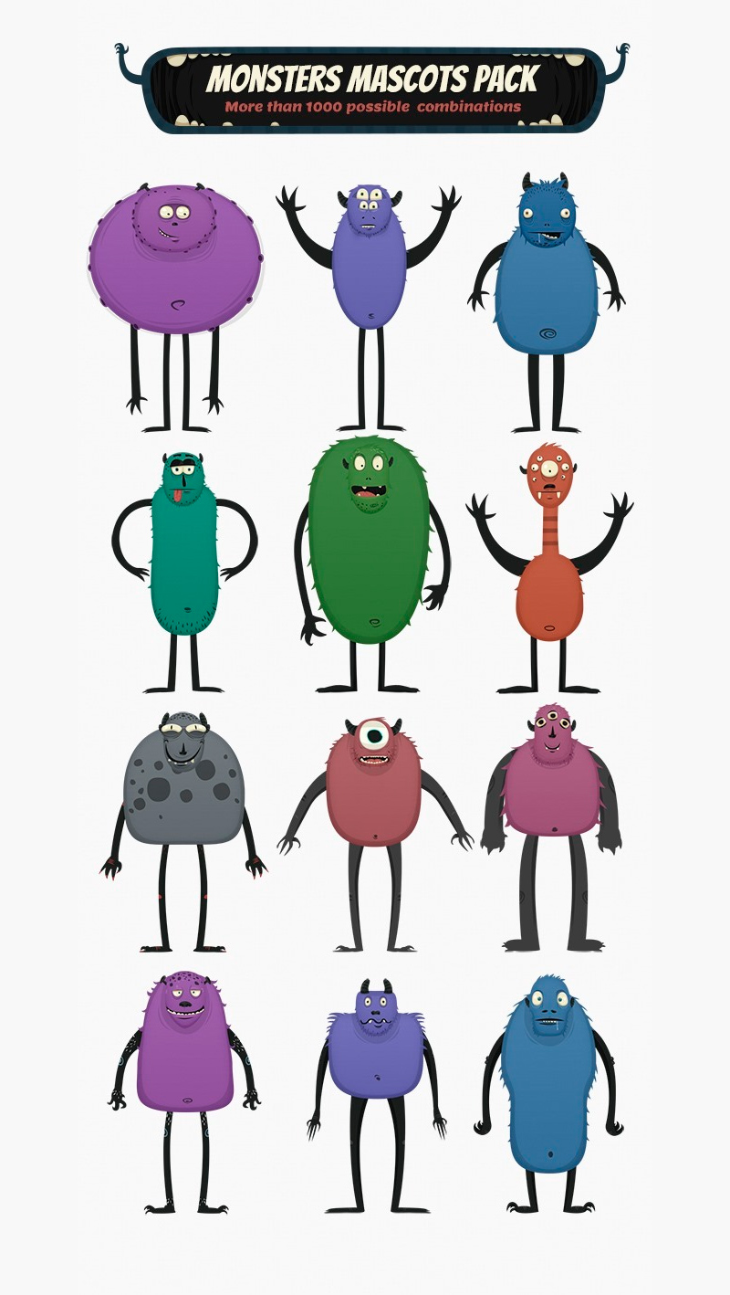 A monster avatar pack made in vector format, great to create different types of monsters. The pack includes eyes, heads, mouths, noses, bodies, arms and legs. The pack is fully editable and you can make thousands of combinations.