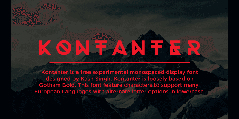 Kontanter is a nice experiment for a monospace display font. This font includes uppercase, lowercase, numbers, special characters and other important glyphs. It is free to download and implement in any printed or web design.