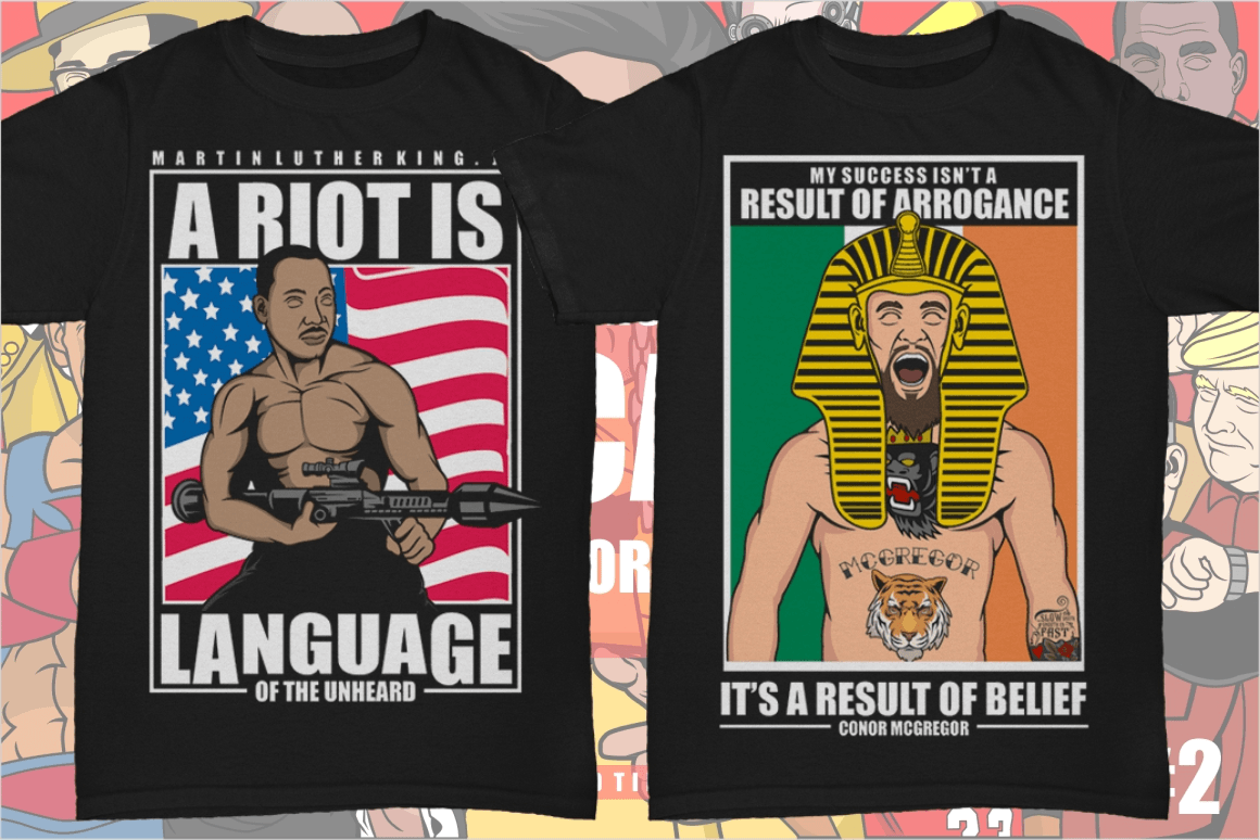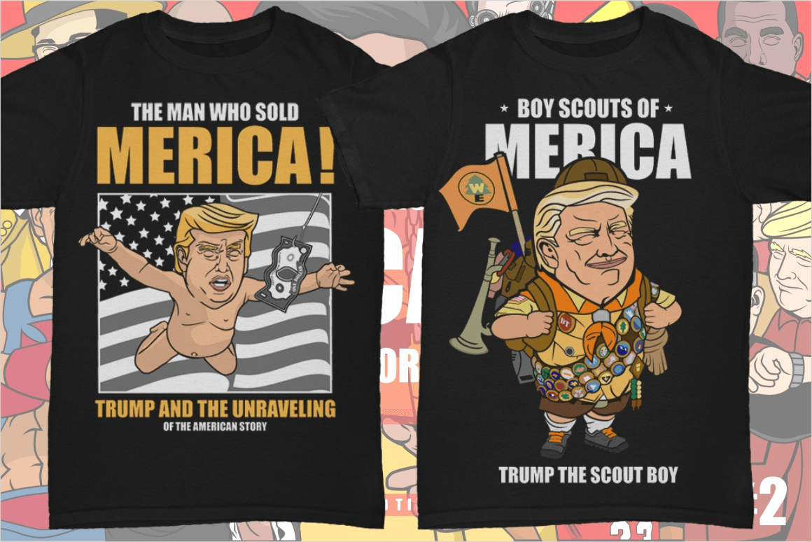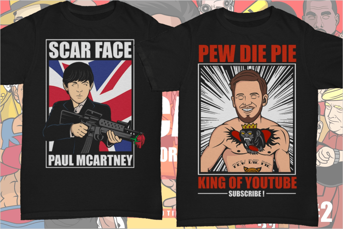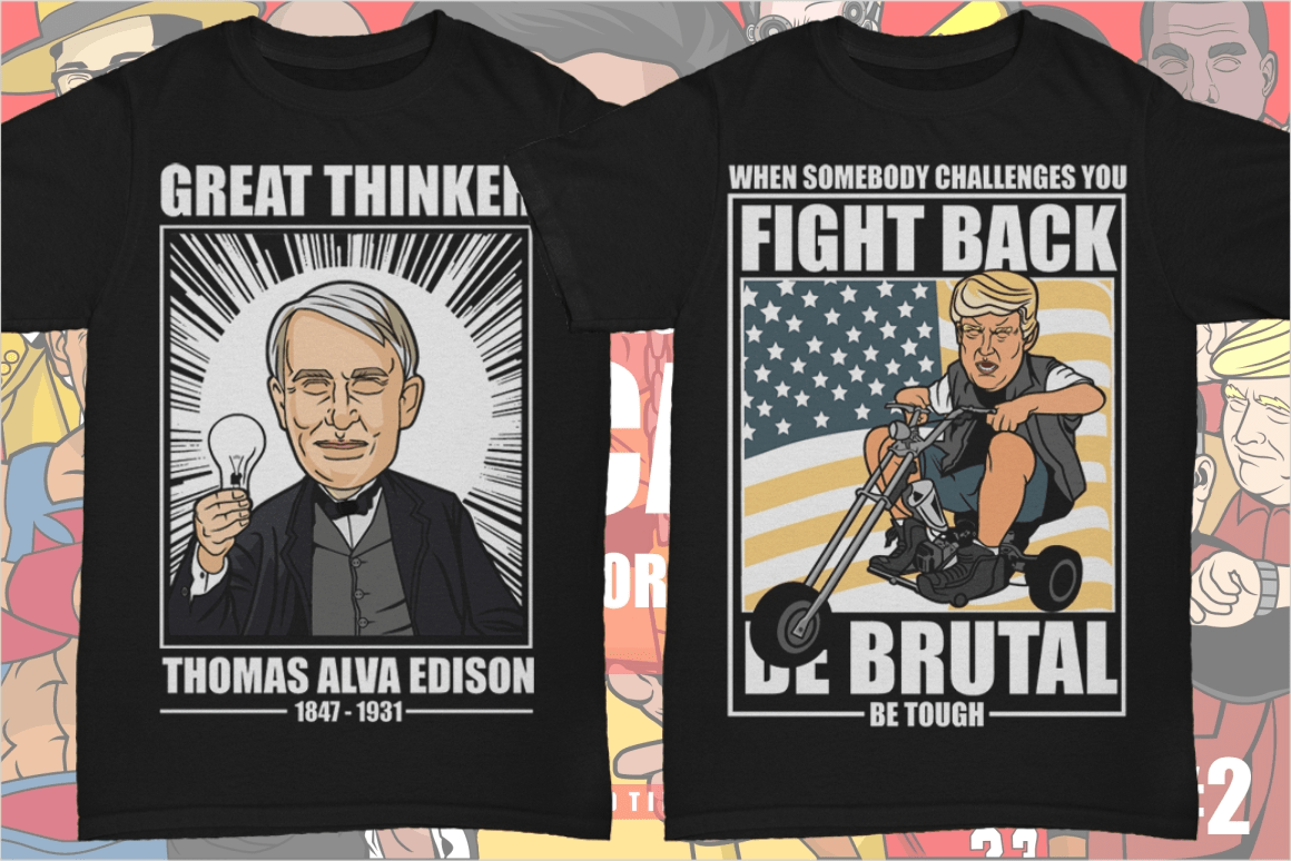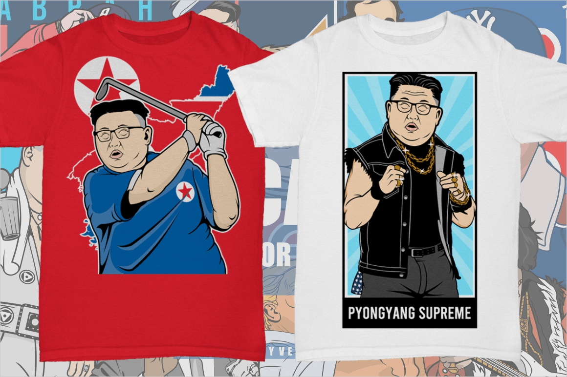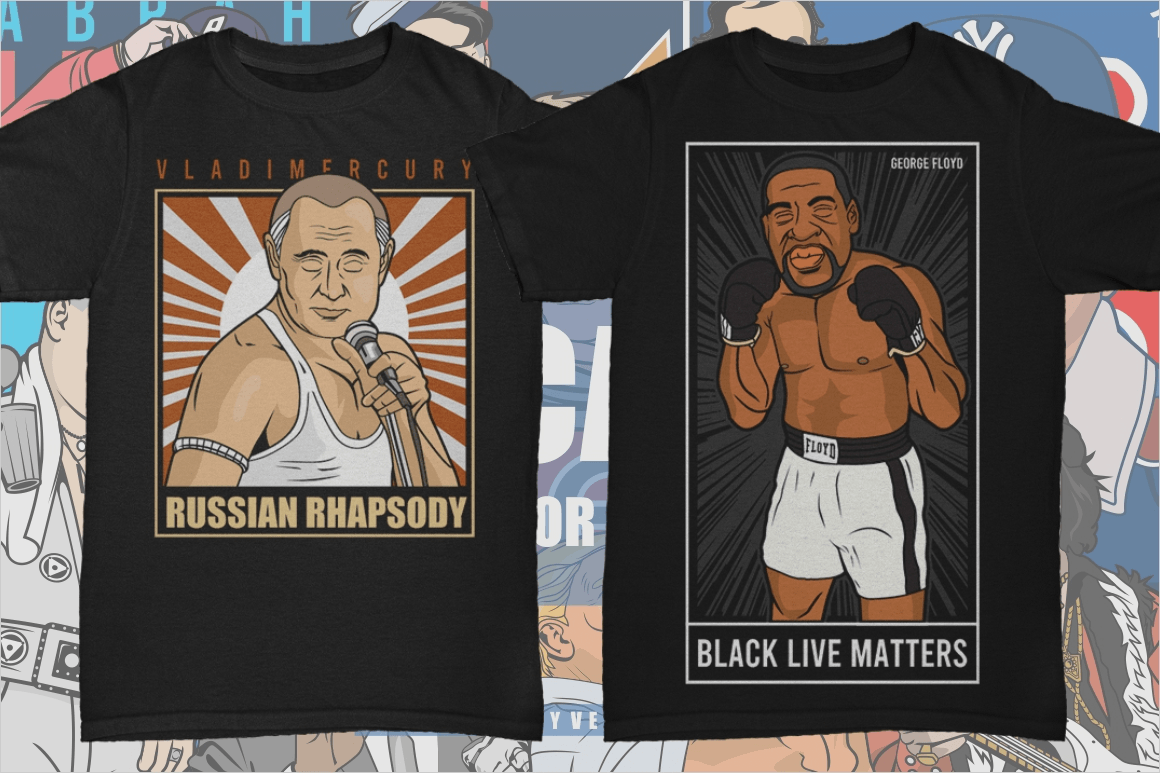 These illustrations feature a fun drawing style and include political figures like Donal Trump caricatures, Obama, Putin, Joe Biden & Kim Jong-un as well as movie stars & musicians like Dwayne Johnson, Kanye West and many more! Great for t-shirt printing, posters, digital media for satire, comedy, commentary and more