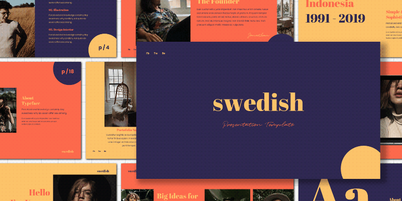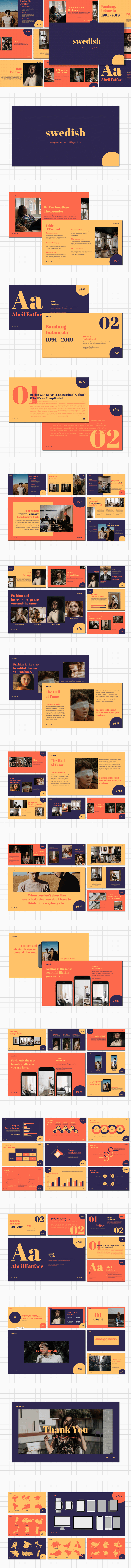 Swedish is a fashion-style presentation template designed with a lookbook appearance. Includes 60+ creative slides with a stylish modern layout. Created Behance user Dz Alfindani