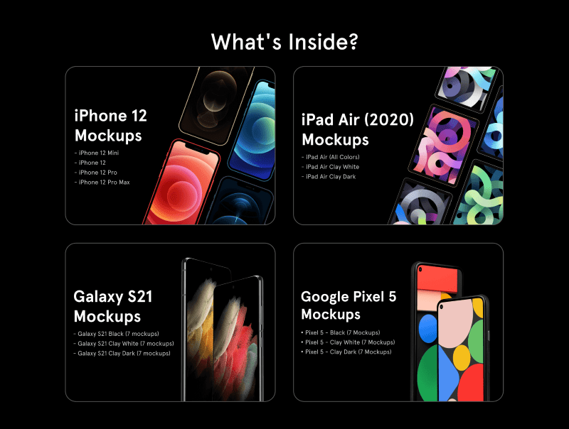 260+ Figma Mockups Set – iPhone 12, iPad Air, Samsung Galaxy S21 & Google Pixel 5