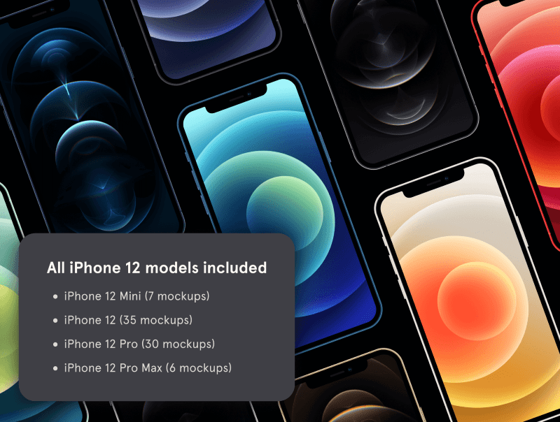 - iPhone 12 Floating Mockup with 7 Color Variations