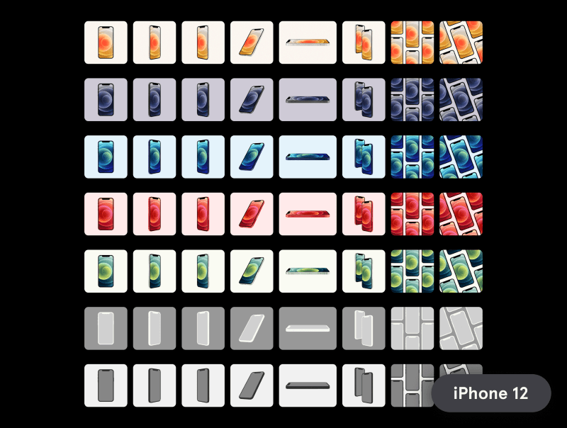 - iPhone 12 Horizontal Mockup with 7 Color Variations