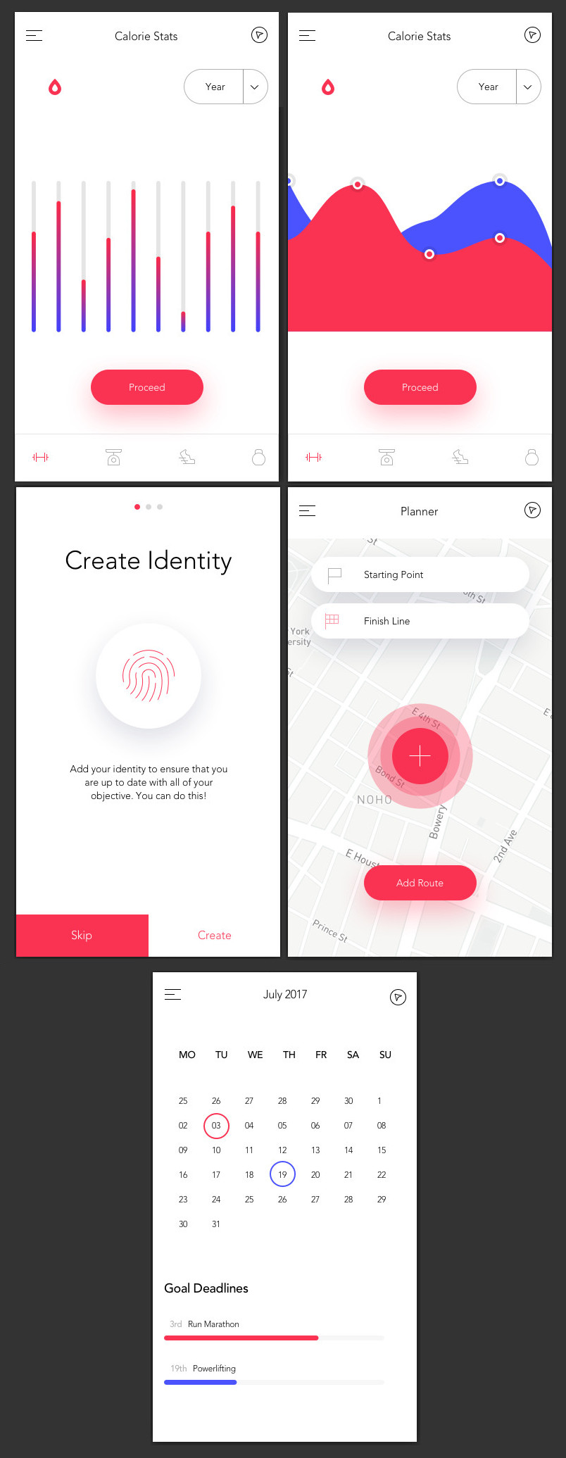 Created and released as a freebie by dribbble user Ronan Buckley, this neat and colorful fitness dashboard will come in handy while working on a mobile app template. It includes source files which allow for great customization and editability, several screens and the best part, it is completely free for personal and commercial use.