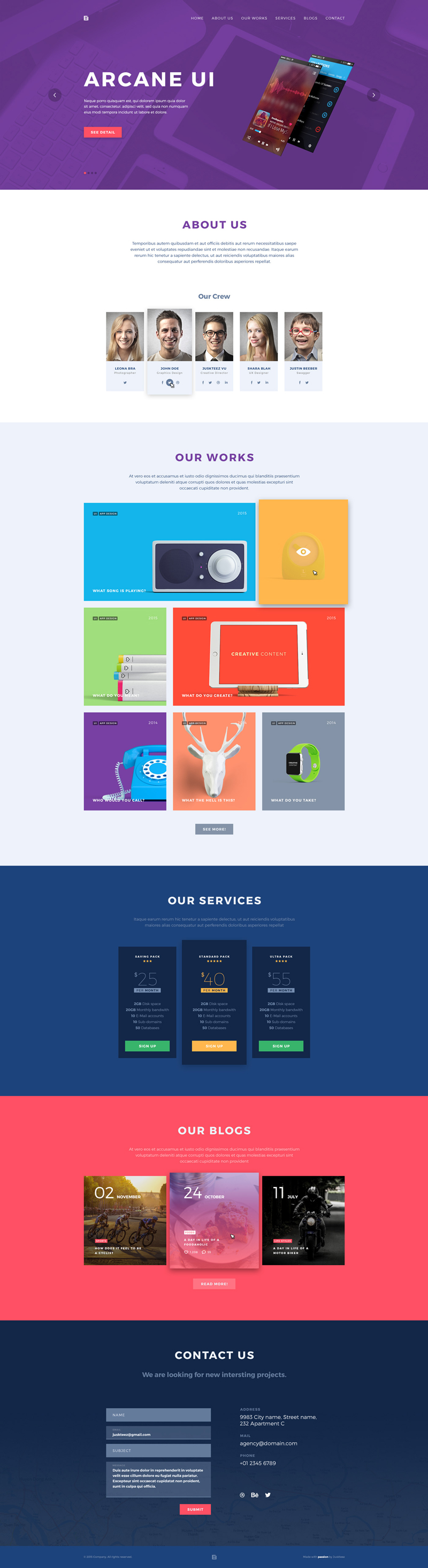 Arcane UI is a modern flat UI kit for web that comes composed in a single page layout template in fully layered PSD format.