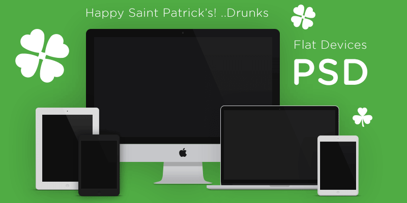 A set of Apple devices mockups made in PSD format including minimally crafted iPad mini (black and white), iPad, MacBook Pro and iMac. The mockups have a flat style, and each element can be edited on its own. This set of mockups was created by Dribble user Nick.