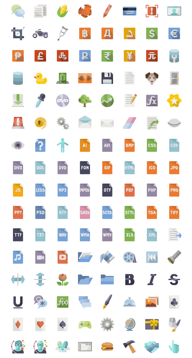 This set includes 500 icons in a beautifully designed flat style. The set has been created using Adobe Illustrator but it also includes SVG icons that can be used in mobile apps, websites and printed designs.