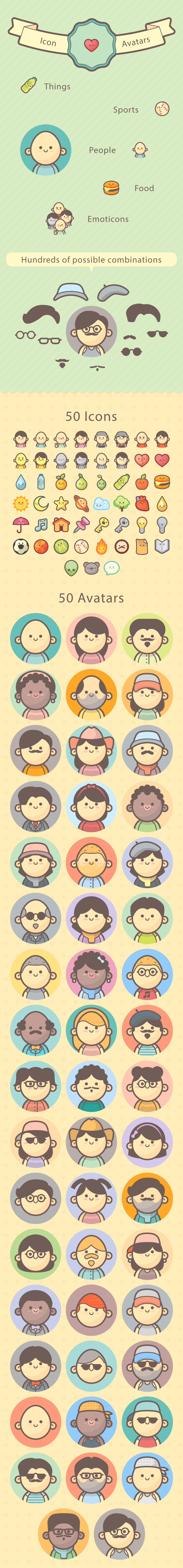 Flat Kawaii Icons & Avatars Set | Bypeople