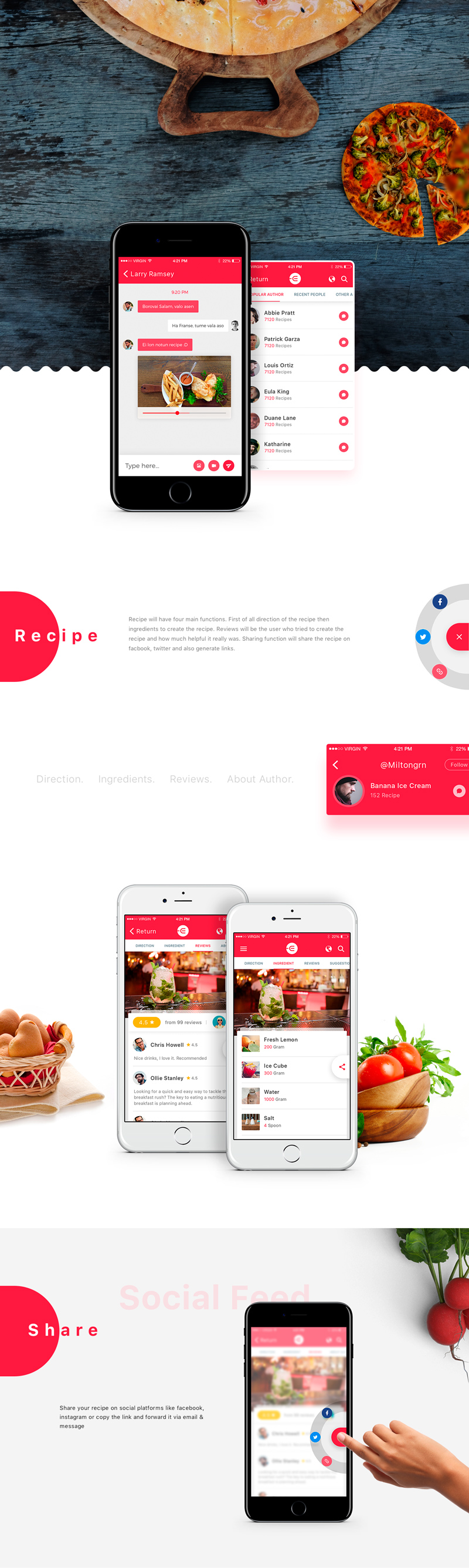 A user interface made in PSD and Illustrator perfect for food, cooking learning apps and restaurant apps. The UI kit has tons of design elements like icons and characters, and you have screens for login, stats, profile, registration and newsfeed, among others.