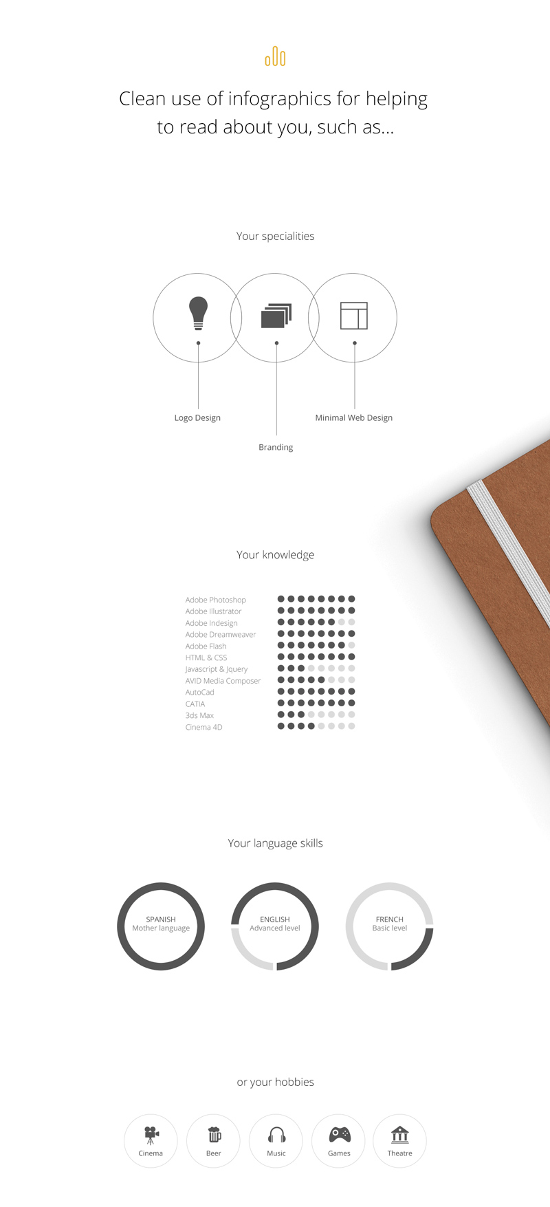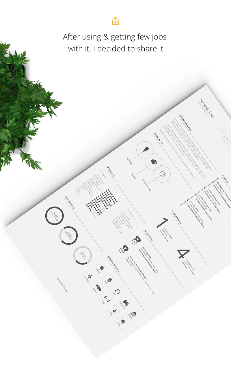 A template that comes in AI format, perfect to show your skills and abilities. The template includes icons and open fonts so you don’t have to look for them anywhere else. It also uses graphics to display information in an organized and clean way.