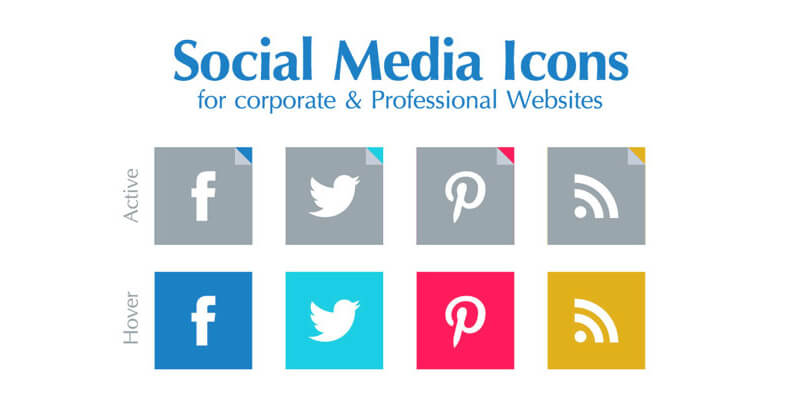 This is a beautiful showcase of free, simple social media icons for corporate and professional websites. It includes icons for the most popular social networks like Facebook, Twitter, Pinterest and email, which are in turn are active, and have animations. And it also includes LinkedIn, Tumblr, Blogger, StumbleUpon, Google Plus, Dribbble, reddit and many more social icons.