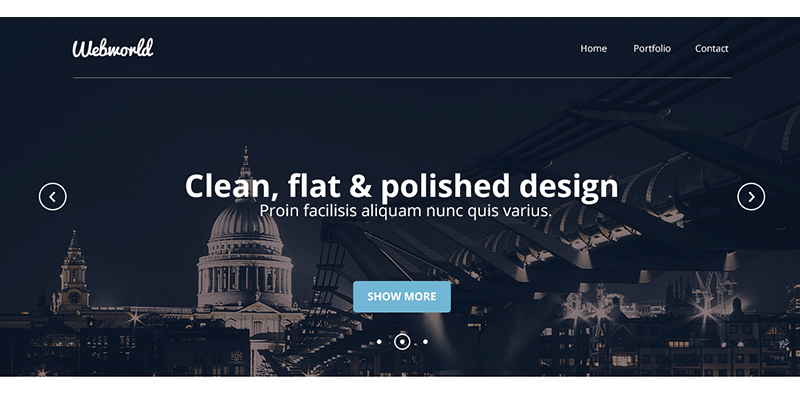 A beautiful clean template for website made in PSD format. The template has a logo on top, a menu, a big background image, description and action button. Then we can see some features area, latest projects, client testimonials, contact and more. It also includes an inner page for portfolios, with thumbnails and a clear layout, and a contact page with the regular form.