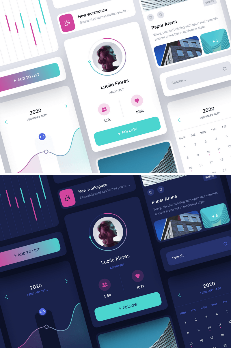 Dark & Light UI Kit For Sketch Including Widgets | Bypeople