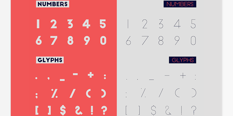 Big John / Slim Joe is a free font experiment created by Spanish Behance user Ion. It has uppercase characters only, one of them with a bold font weight and the other one with a light font weight. It includes the regular alphabet, numbers and additional glyphs.