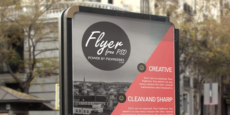 A mockup for events advertisement that come in a fully editable and print ready PSD file that comes with organized layers and features a few icons, background photo, and flat style layout.