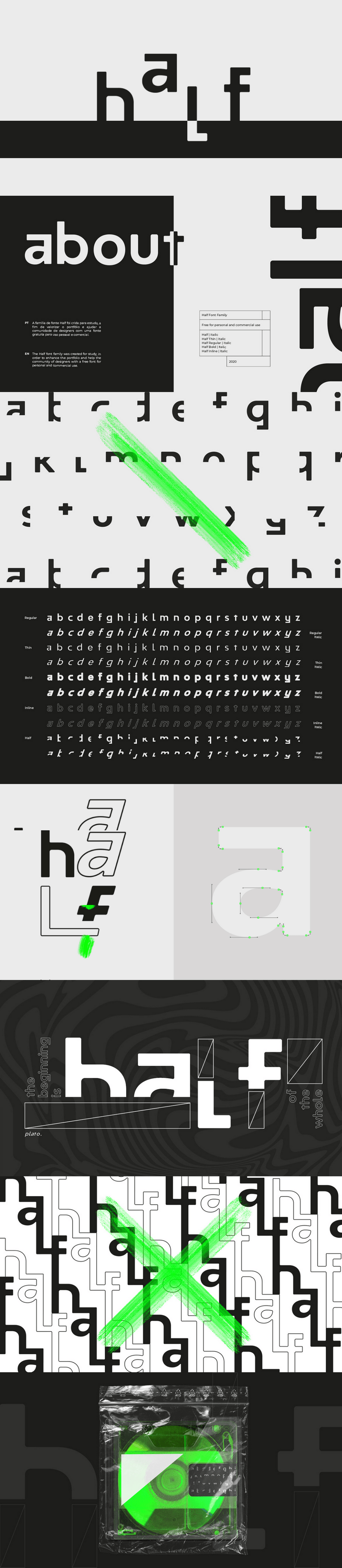 Half is a font family that includes multiple weights, free for commercial usage in all your projects. Created by Caio Creative.