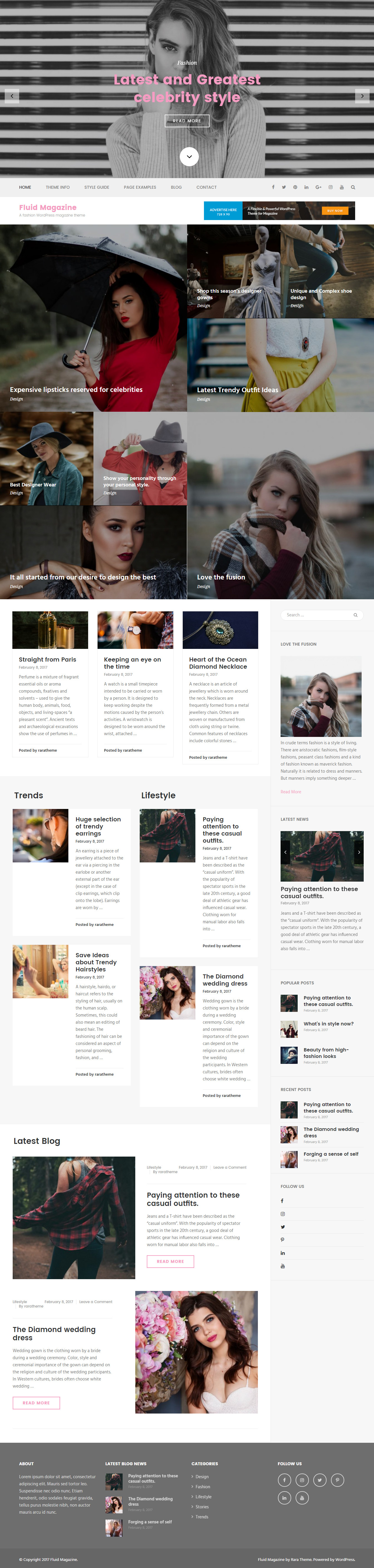 Fluid is a compelling magazine-focused WordPress theme with a responsive interface, social media integration, widget areas, biography for the author, translation, SEO optimized, and clean code.