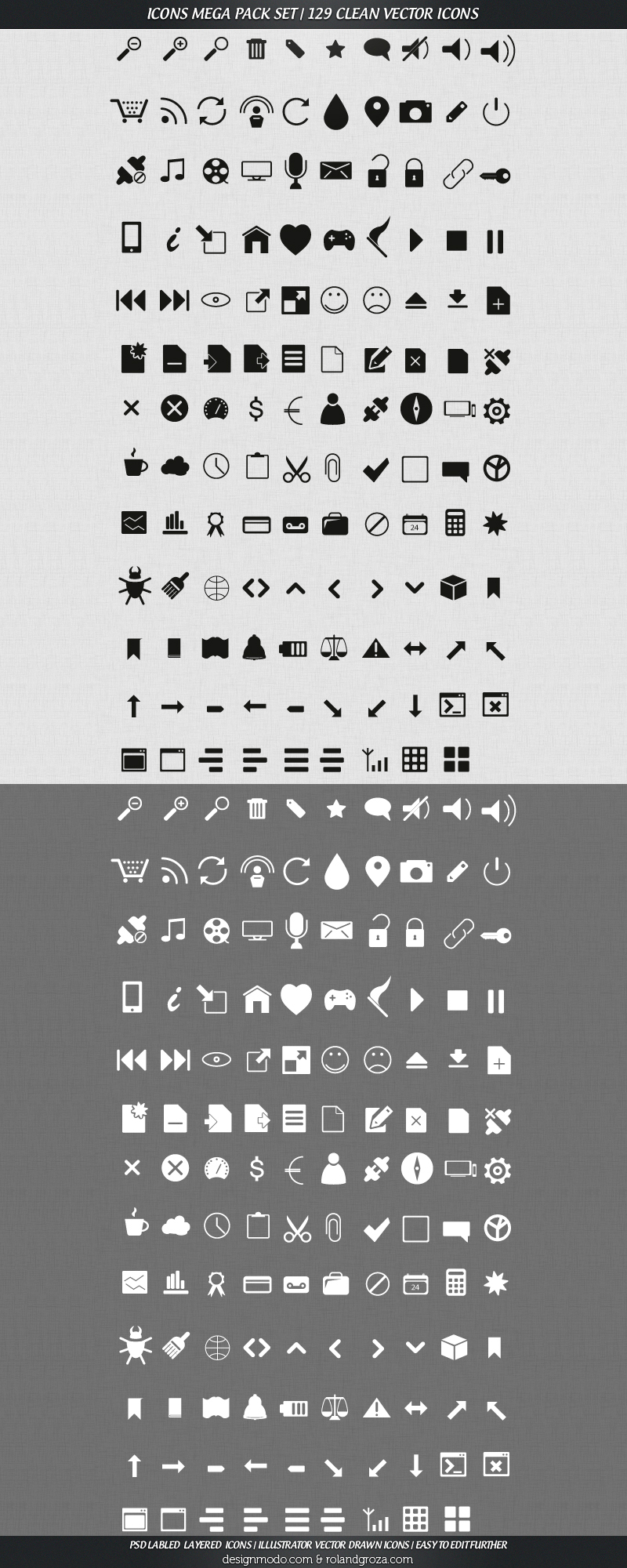 Free Mega Pack Vector Icons Set – 129 Clean Icons | Bypeople